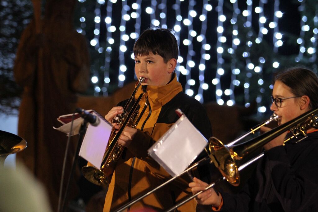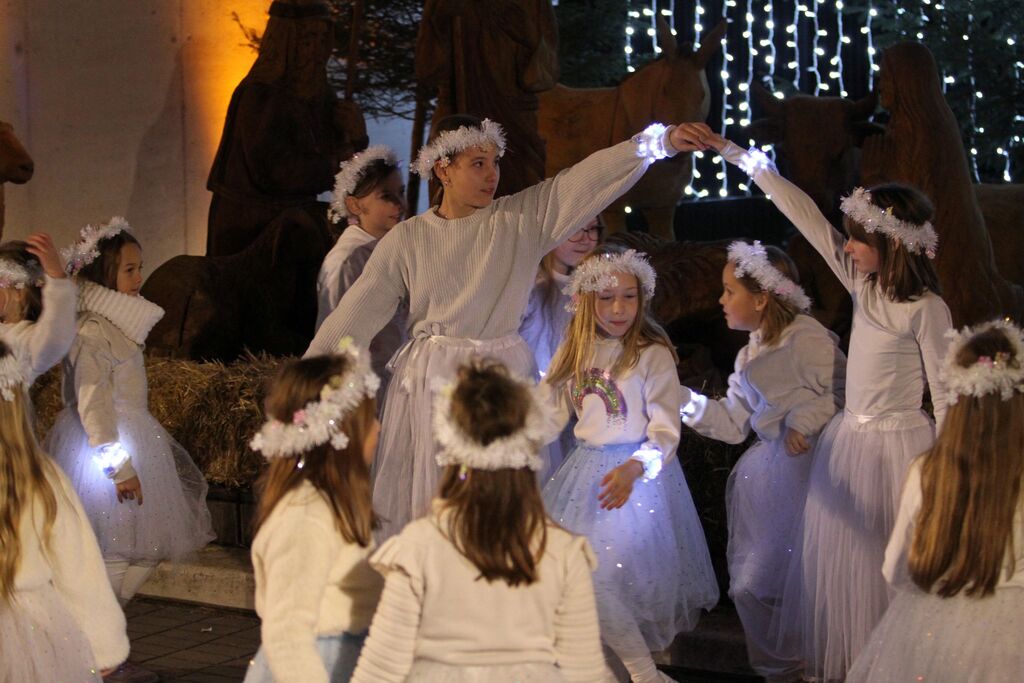 Z ubranim petjem in razigranimi plesnimi koraki so vse prisotne ogreli člani otroškega pevskega zbora in plesnega krožka Podružnične šole Šentlovrenc. V nadaljevanju programa so nastopili pihalci in trobilci Glasbene šole Trebnje , veselo razpoloženje najmlajših pa je še dodatno dvignila Alenka Kolman s svojo plesno glasbeno predstavo Zimska vila, ki je otroke popeljala v svet domišljije, snežnih čarovnij in toplih sporočil o prijateljstvu .