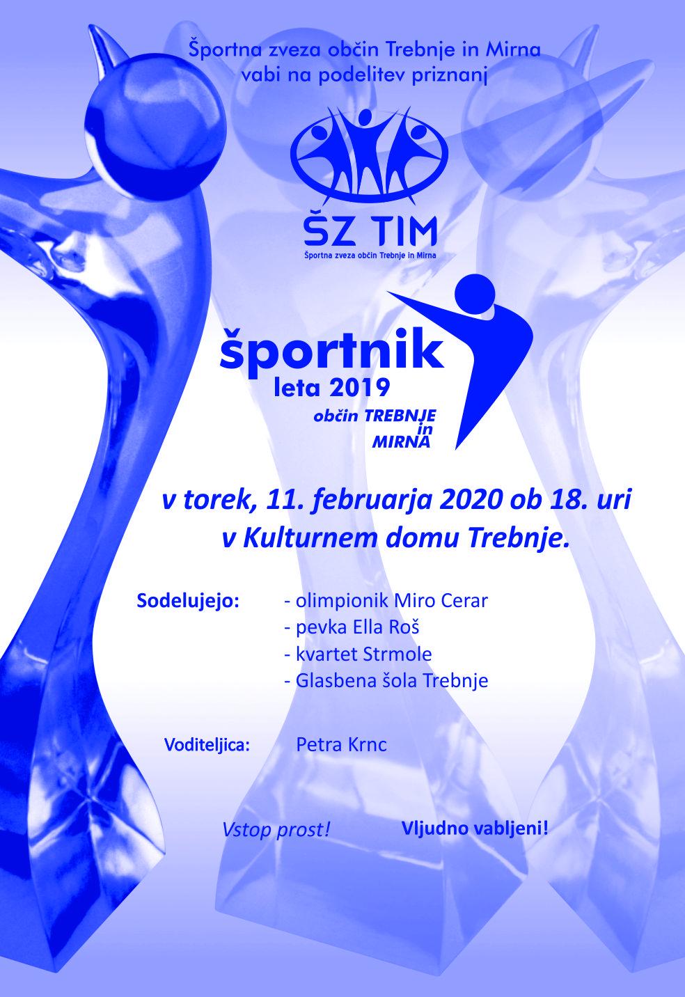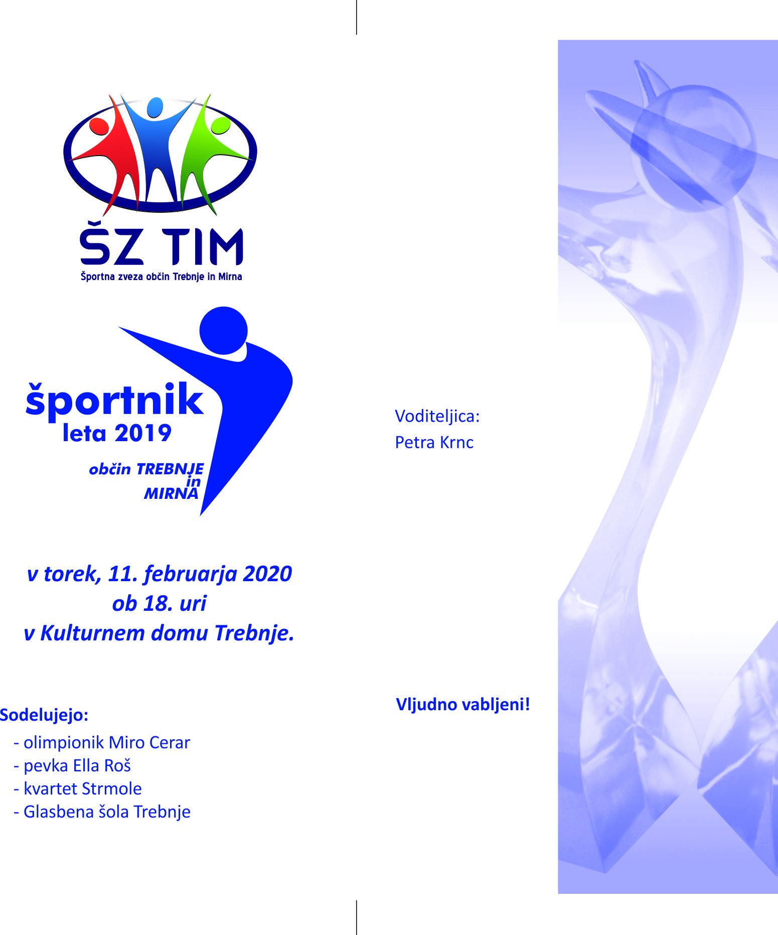 Vabljeni na prireditev ŠPORTNIK LETA 2019, ki bo v torek 11. februarja 2020, ob 18. uri v Trebnjem.