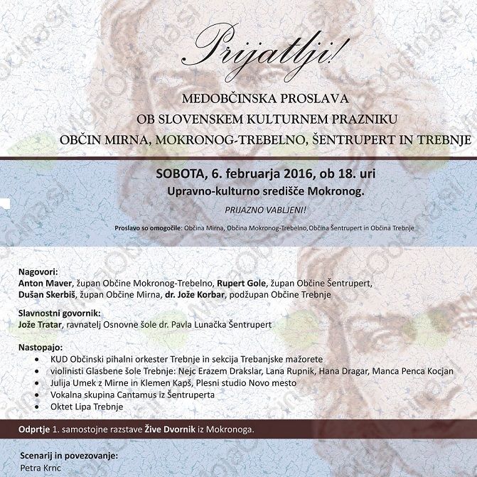 Vabimo vas na medobčinsko proslavo ob slovenskem kulturnem prazniku, ki bo v soboto, 6. 2. 2016 ob 18. uri v Mokronogu.