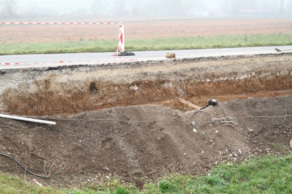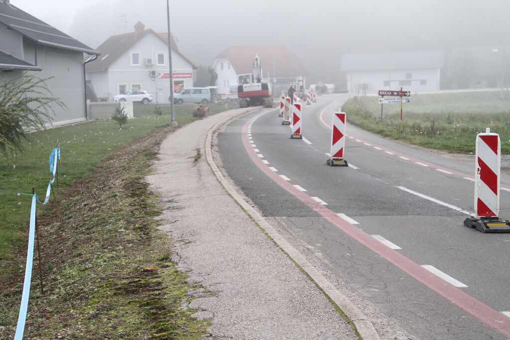 Pločnik je bil tam tudi zaradi posedanja brežine ob njem vidno deformiran. Zunanji del se je posedel, na nekaterih mestih je bil celo odtrgan. Ker so bile deformacije tako velike, da so že predstavljale nevarnost za pešce, je bila potrebna sanacija. Izbrani izvajalec del bo v sklopu projekta zgradil tudi oporni zid. Z novim pločnikom v dolžini 115 m se bo zagotovila še večja varnost pešcev na tem odseku, ki predstavlja šolsko pot. Zaradi del je vzpostavljena polovična zapora lokalne ceste, promet je na tem območju urejen s semaforjem.