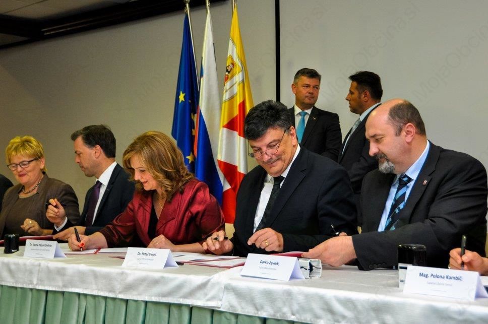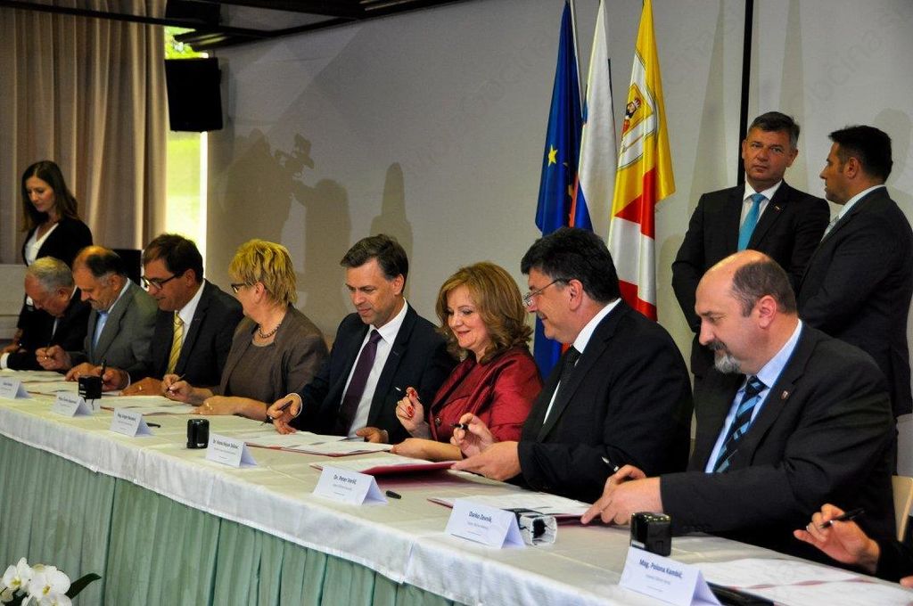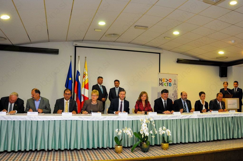 Dogovor so podpisali župani občin Škofljica Ivan Jordan, Ivančna Gorica Dušan Strnad, Trebnje Alojzij Kastelic, Mirna Peč Andrej Kastelic, Novo mesto mag. Gregor Macedoni, Semič mag. Polona Kambič, Črnomelj Mojca Čemas Stjepanovič, Metlika Darko Zevnik, namestnica župana Karlovačke županije Vesna Hajsan-Dolinar in župan občine Grosuplje dr. Peter Verlič, ki je tudi predsednik iniciative za spodbujanje raziskav in inovacij na področju železnic Jugovzhodne Evrope (SEESARI - South East Europe Strategic Alliance for Railway Innovation) ter pobudnik projekta.