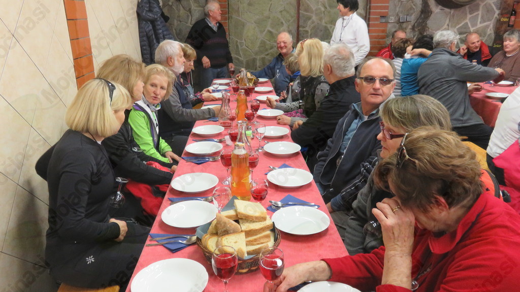 Od tu naprej smo rabili kar nekaj časa, da so se nam polegli polni želodci, da smo lahko nadaljevali s svojimi bolj ali manj gibčnimi koraki do Trniča in naprej v Sejenice, ko nas je končno po petih urah in pol hoje (in postajanja po zidanicah ob poti) v Tončkovem domu (Gostilna Mrhar) pričakala izvrstna obara z žganci domače z kuhinje.