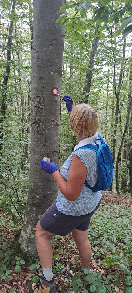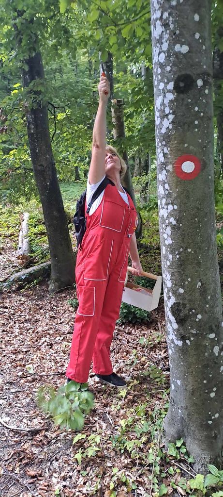 Druga skupina pa smo odšli iz Mirne proti Debencu. Tu smo obnavljali markacije in risali nove ter odstranjevali podrast.