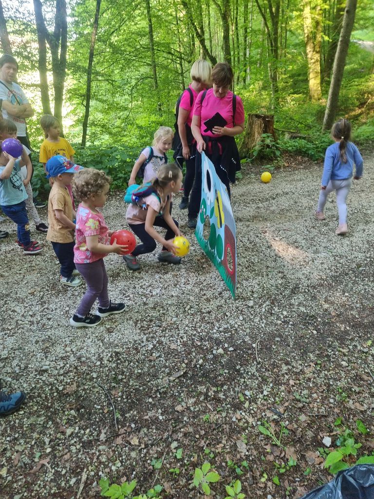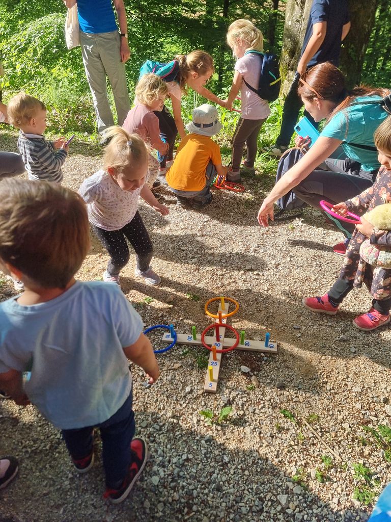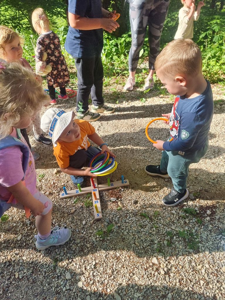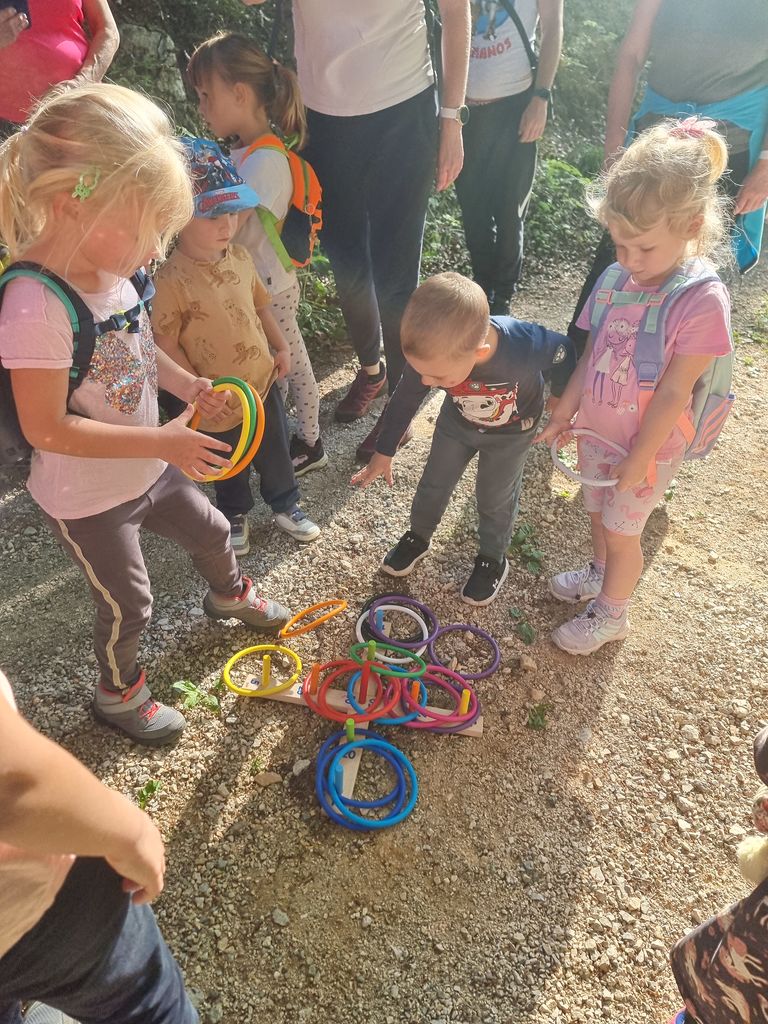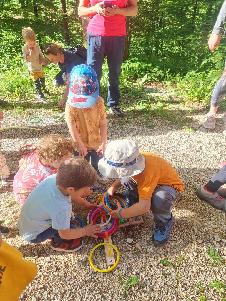 Na poti nas je čakalo kar nekaj postaj. Morali smo metati žoge skozi različno velike luknje ter metati obroče v cilj.