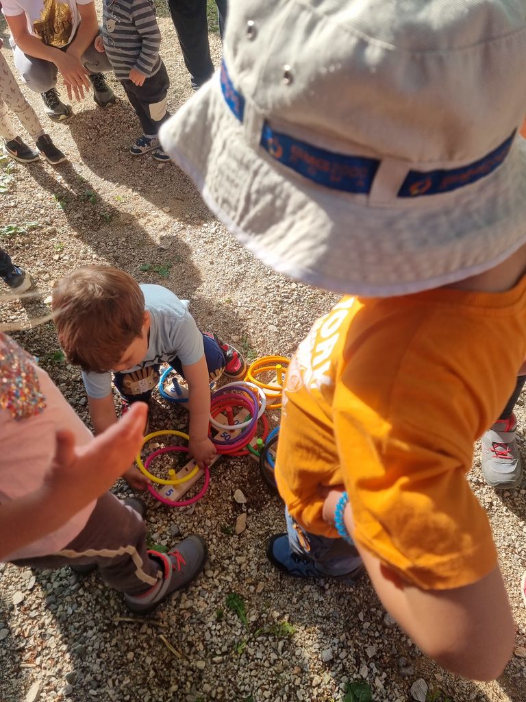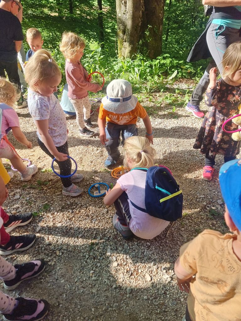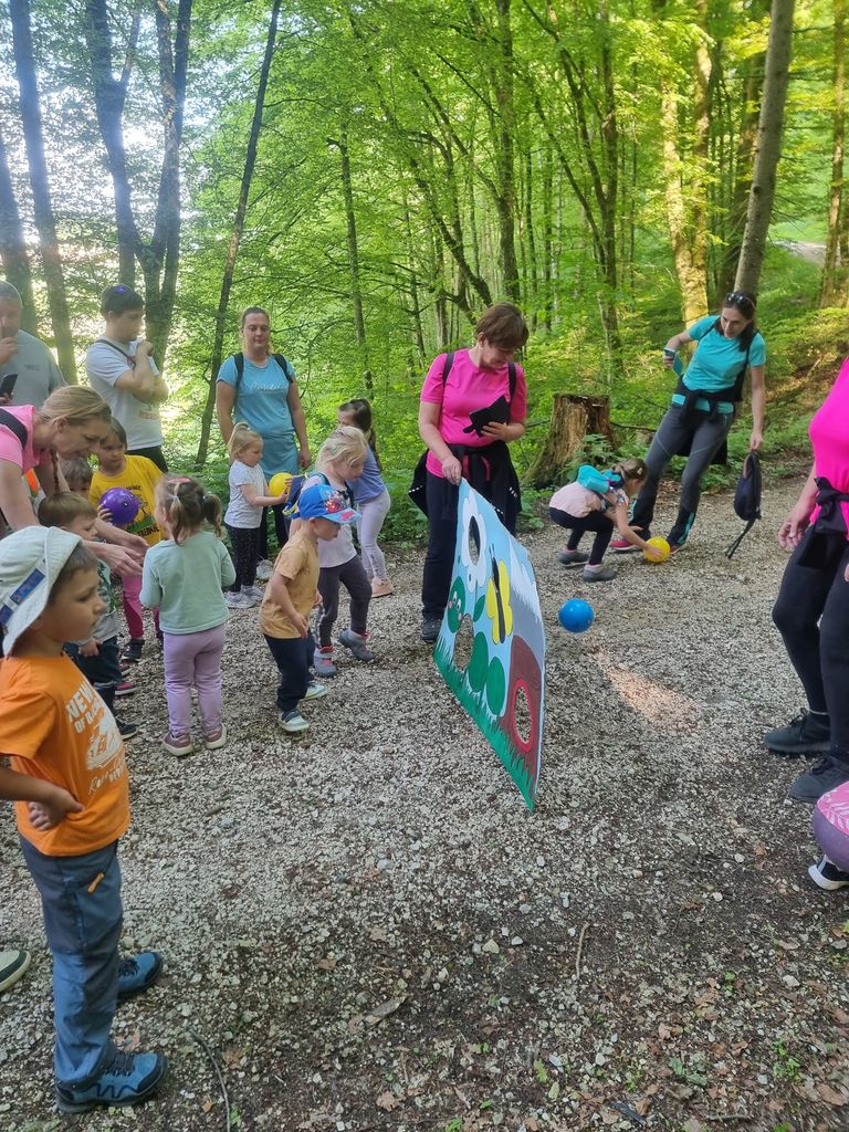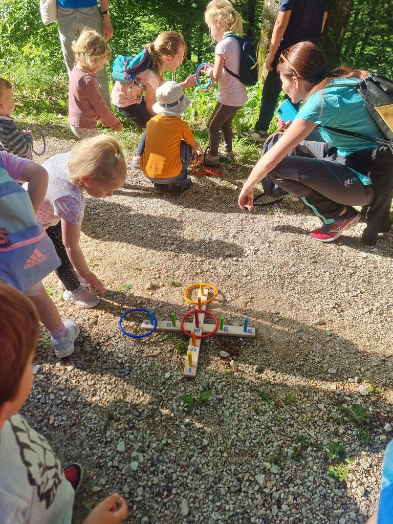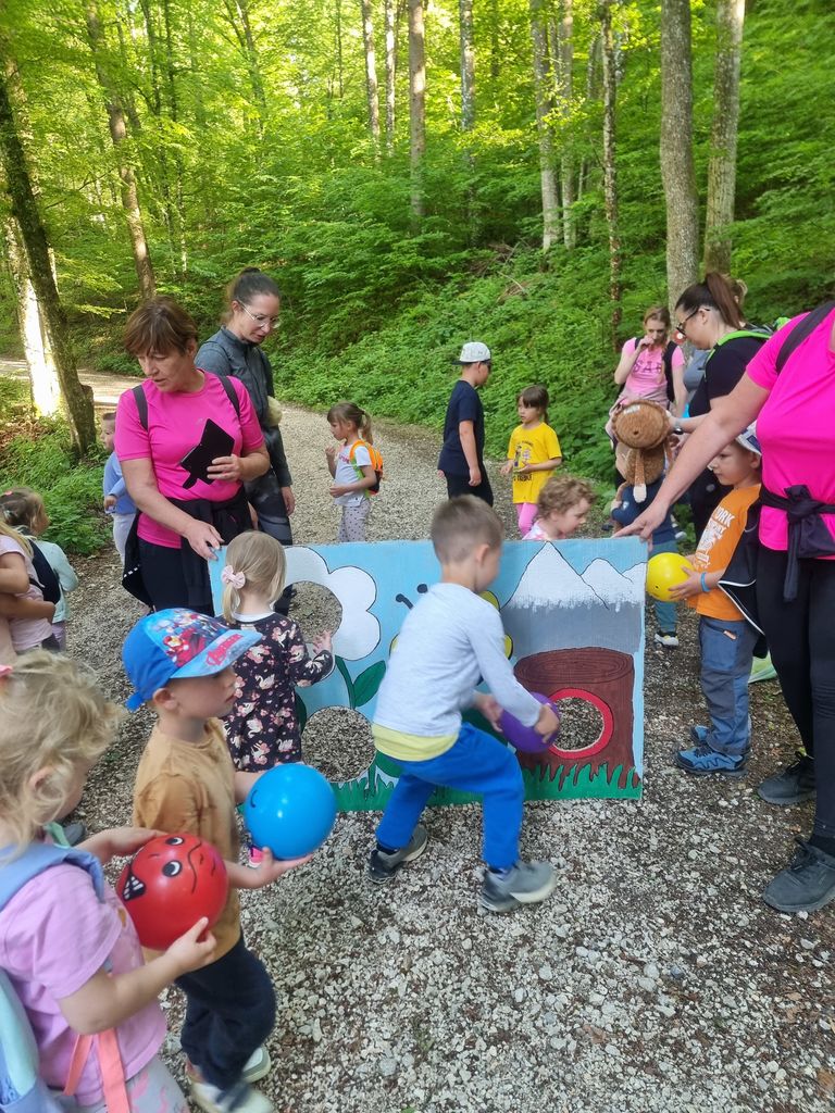 Na poti nas je čakalo kar nekaj postaj. Morali smo metati žoge skozi različno velike luknje ter metati obroče v cilj.