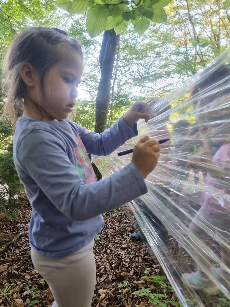 Na naslednji postaji smo postali pravi umetniki, saj smo na veliko folijo s flomastri risali metulje.