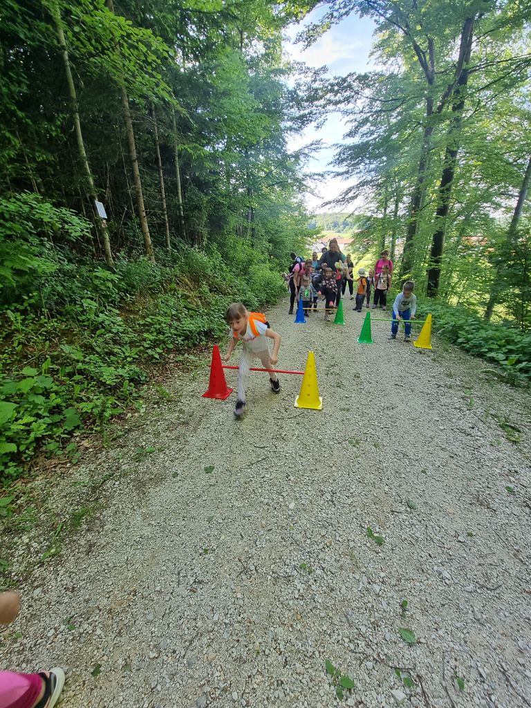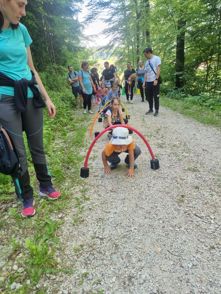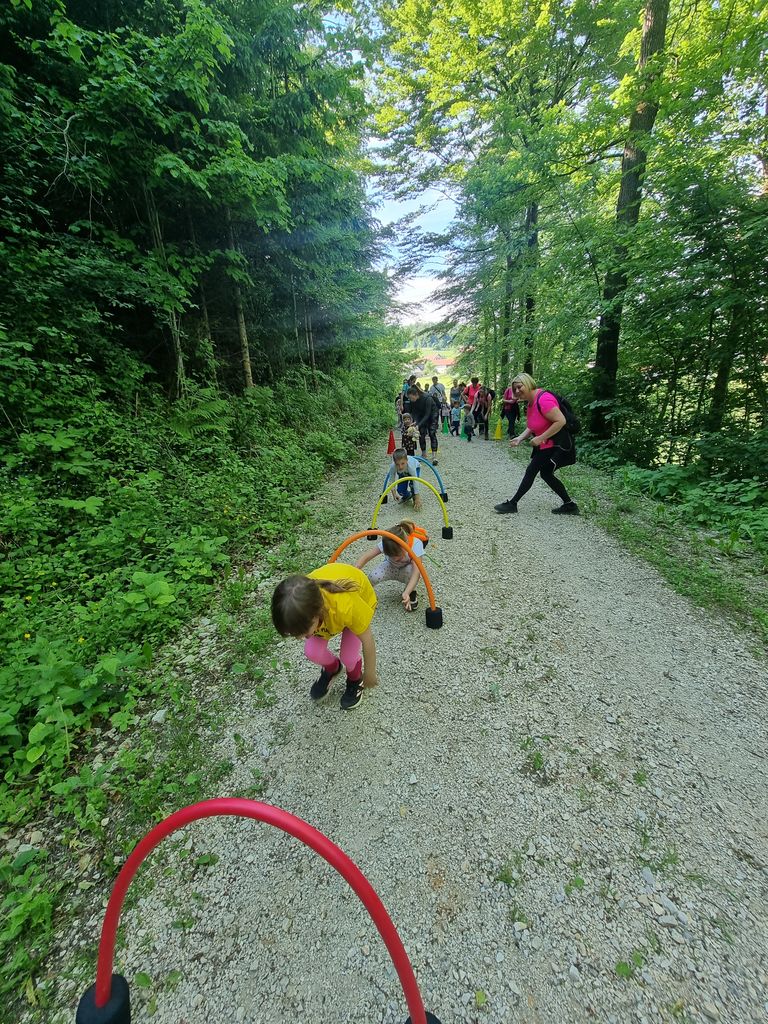 Aktivni sprehod je potekal po delu trim steze. Že na začetku poti so nas čakale ovire, katere smo morali preskočiti, preplezati, skratka, pokazati smo morali vse gibalne spretnosti.