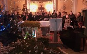 V tihi temni noči, tam na hribčku nad Gabrom pesem je donela. Prečudoviti božični koncert, ki so ga pripravili moški pevski zbor Prijatelji iz Šentvida pri Stični skupaj z gosti; domačim cerkvenim ženskim pevskih zborom, citrarko Evo Medved, pianistko Špelo Sellak in solisti Ksenijo Kastelic, Vesno Koželj, Dominikom Kastelicem in Robijem Markovičem. Božični prazniki so presežki v vseh pogledih za naša čutila. Soj tisoče lučk, prečudovito okrašena drevesa, vasi, ulice in mesta so čudovita paša za naše oči. Omamni vonji po klinčkih, cimetu, jabolkih, pomarančah, kuhanem vinu dodajo svojo čarobnost in tako ta praznik občutimo tudi z nosom. Bogato obložene mize z domačimi dobrotami razvajajo naše brbončice v ustih. In vsekakor si ne moremo in ne znamo predstavljati božičnih praznikov brez prepevanja božičnih pesmi. Obiskovalci koncerta so lahko uro in pol uživali v čudovitih pesmih z božičnimi napevi. Vendar božič ni za vse tako lep, barvit in družaben. Tako so na naša srca potrkali tako v pesmi ko v vezni besedi. Opozorili so nas tudi na osamljenost in stisko posameznikov, ki v času božično-novoletnih praznikov svojo stisko še posebej občutijo.
