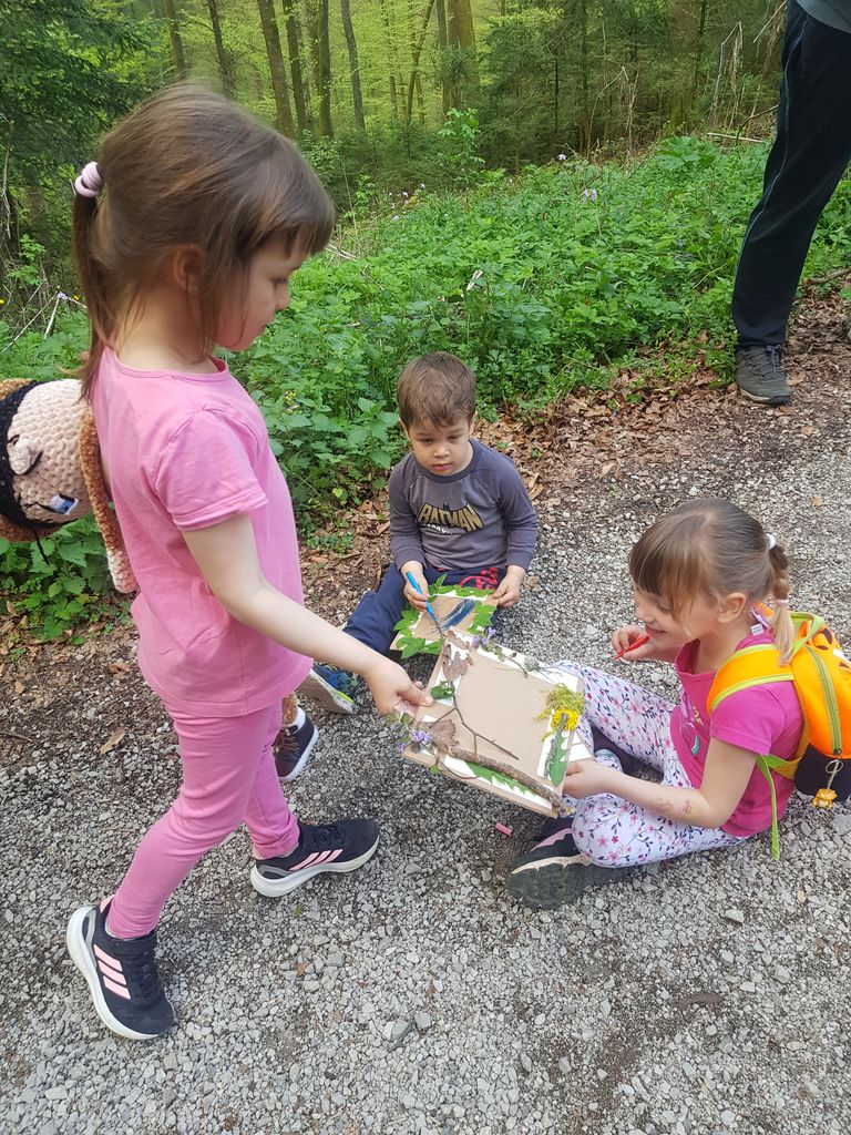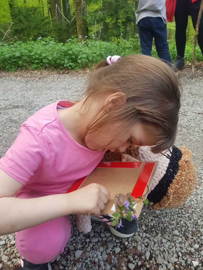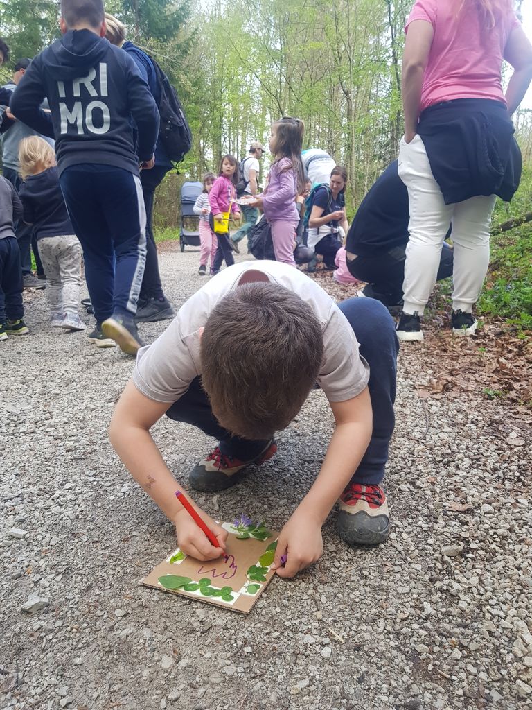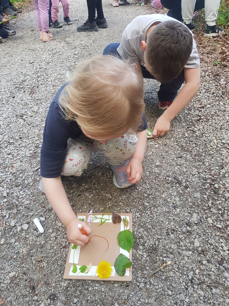 Naslednja postaja je spodbudila ustvarjalnost otrok, saj so na »svojo sliko« nalepili okvir iz naravnega materiala.