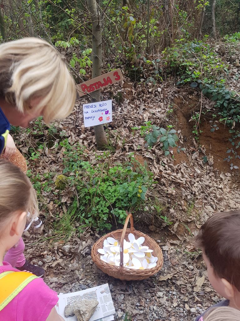 Da smo Cici planinci zelo spretni se je dobro videlo na naslednji postaji, ko so otroci skupaj s staršem nosili na časopisnem papirju spomladanske rože. Te papirnate rože so čez nekaj deset metrov obešali na vrvico, tako so na koncu naredili Verigo spomladanskih rož.