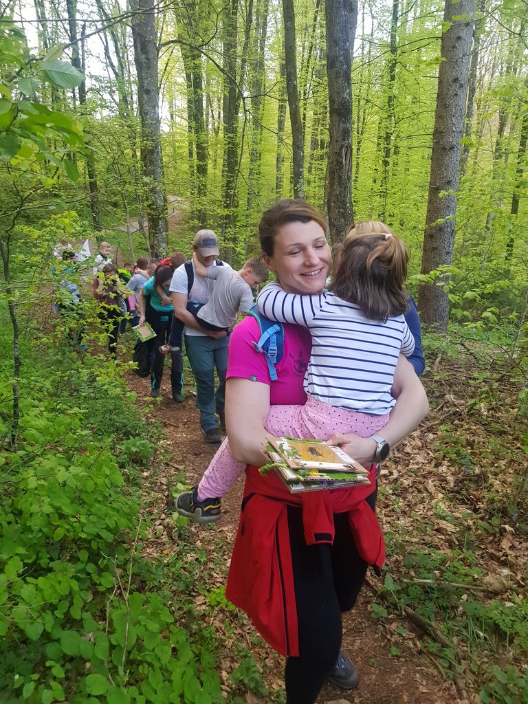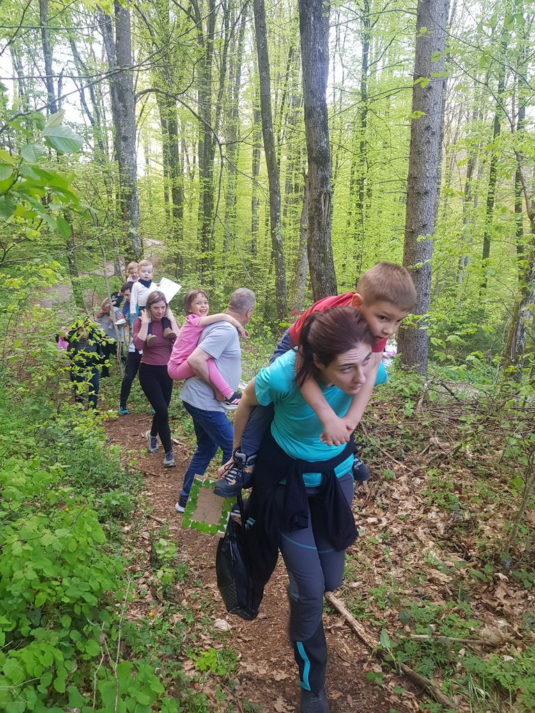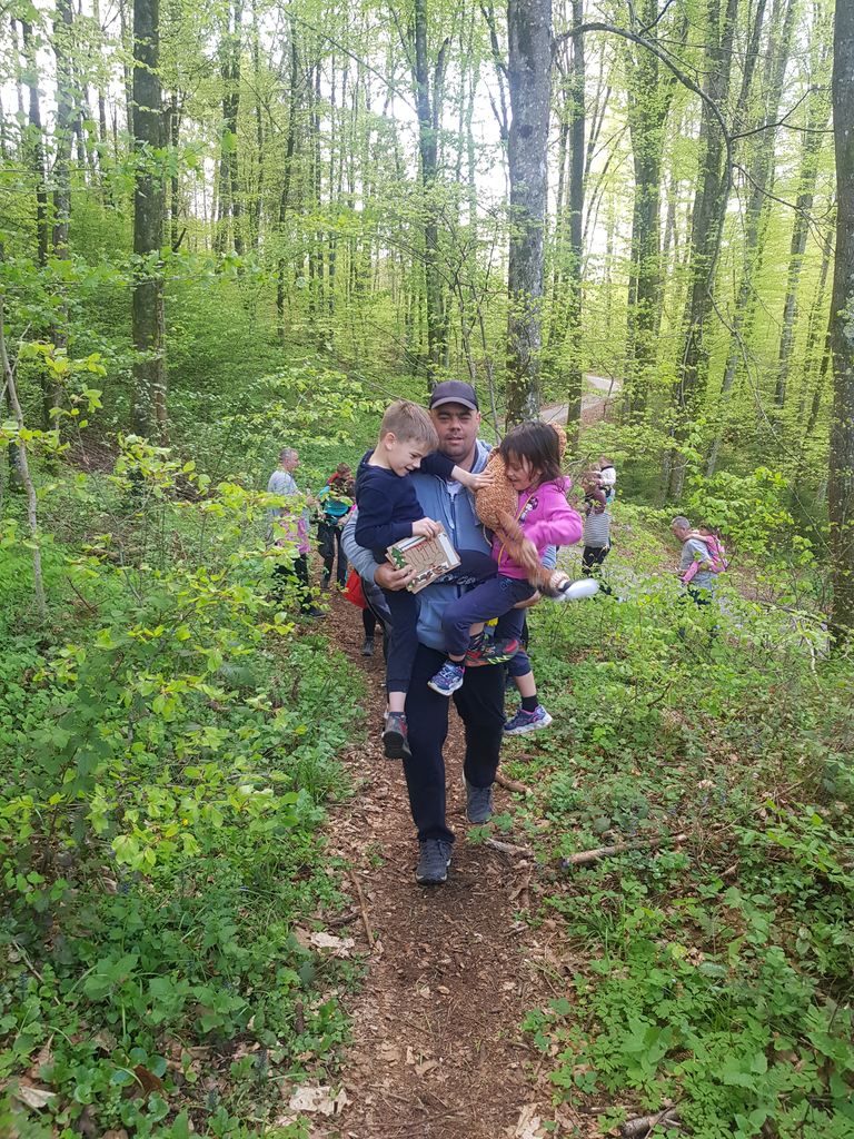 Pred koncem poti in zasluženo malico je sledil še napor za starše, saj so morali svoje otroke nositi »štuparamo«.