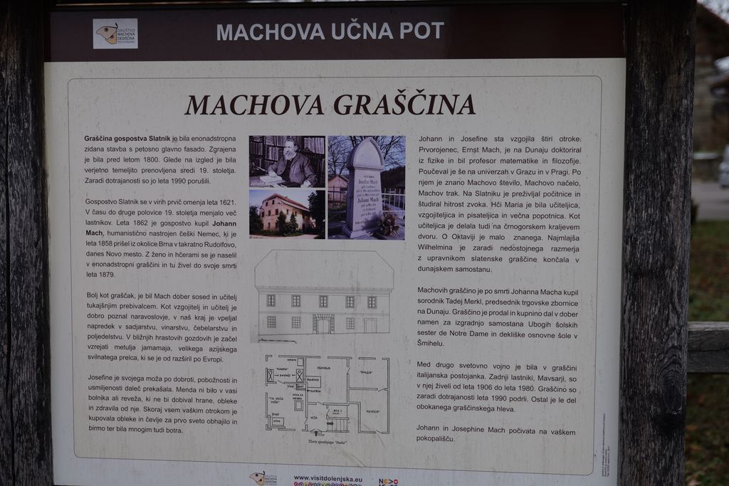 Johan Mach, v filozofiji izobražen humanist in poznavalec naravoslovja, je leta 1862 kupil graščino v Velikem Slatniku in se tja preselil s svojo družino. Na svojem hribu je gojil sviloprejko, do takrat pri nas neznanega metulja, azijskega svilnatega jamamaja. Njegov sinErnest Mach je bil znanstvenik, fizik in filozof. Po njem se imenuje Machovo število, ki ga običajno uporabljamo za opis hitrosti letal.