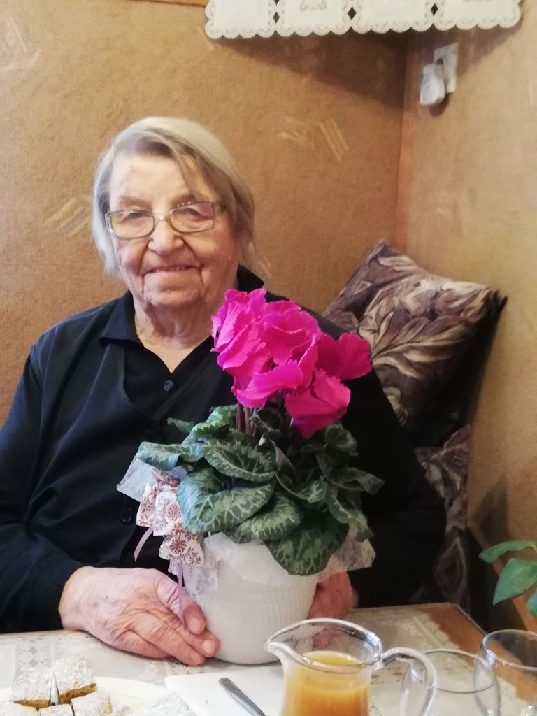 V petek, 14. 2. 2020, je okrogli jubilej - 90 let- praznovala gospa Marija Progar iz Dola pri Trebnjem. Ob tej priložnosti sva jo z Mojco Mihevc obiskali na njenem domu in ji čestitali.