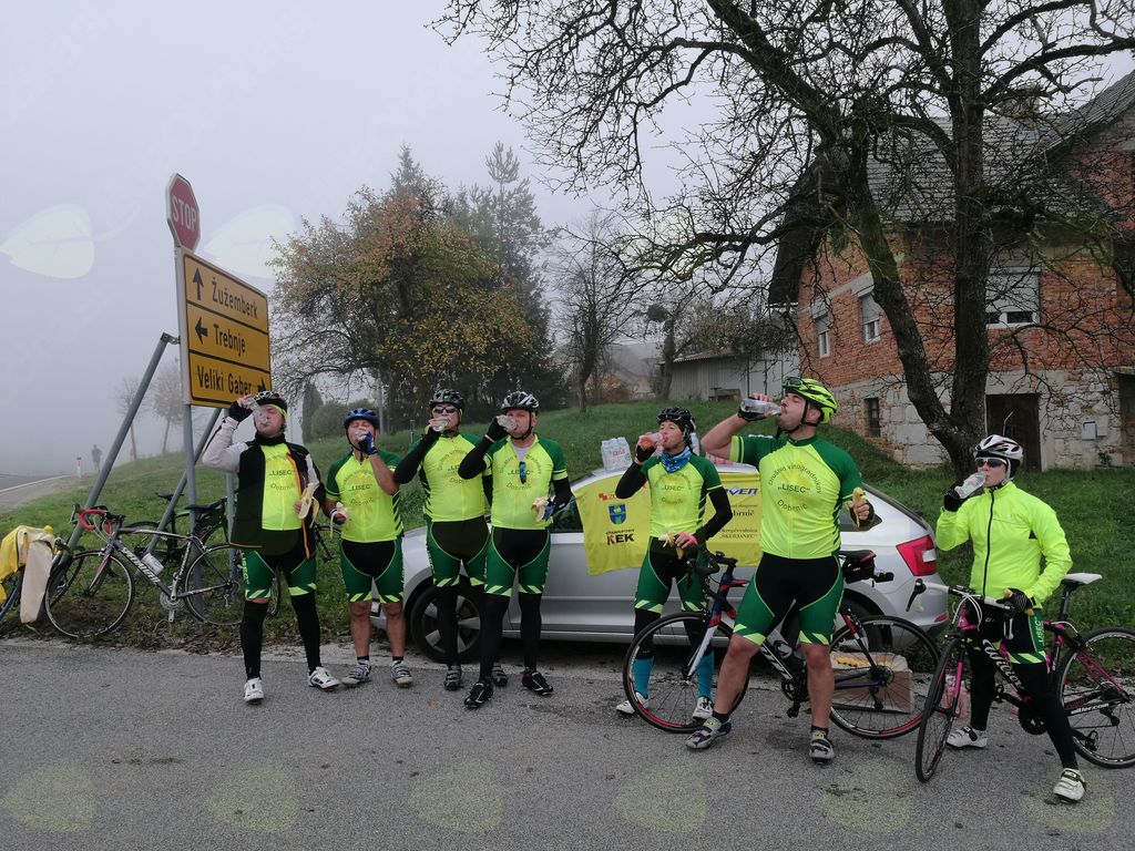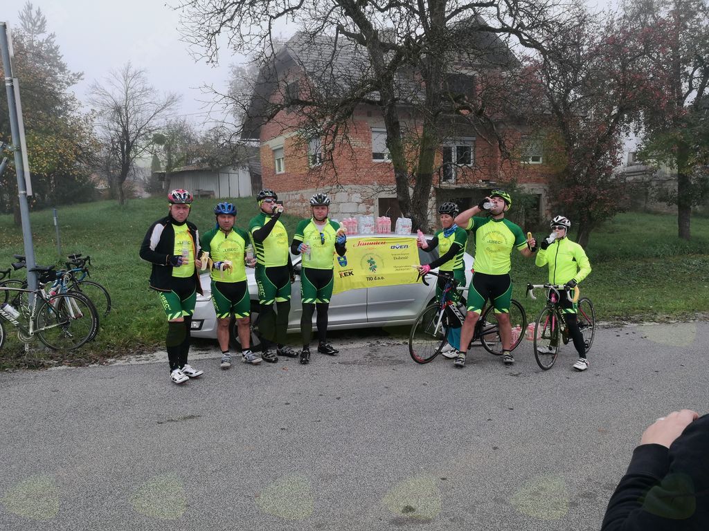 V društvu smo imeli plan kolesarjenja že v septembru, vendar smo zaradi slabega vremena prestavili na 15. oktober. Tudi ta dan niso bile vremenske razmere naklonjene kolesarjenju, saj je bilo kljub prestaviti ure starta, še vedno precej megleno. Pogumni kolesarji so, ne glede na vremenske razmere, startali in kolesarili po planu. Večina se jih je odločilo za najdaljšo progo, ki so prevozili 45 km. Približno na sredini najdaljše poti je bil postanek, kjer jih je predstavnik »Jamnice« postregel tudi z njihovo vodo.