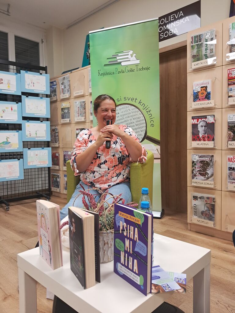 V Osrednji knjižnici Trebnje so v petek, 10. oktobra 2025, pripravili zanimiv pogovorni večer s predstavitvijo knjige Psiha mi niha. V sodelovanju z literarno sekcijo Društva Praetorium Latobicorum so gostili avtorico Matejo Perpar, s katero se je pogovarjal Luka Bregar.