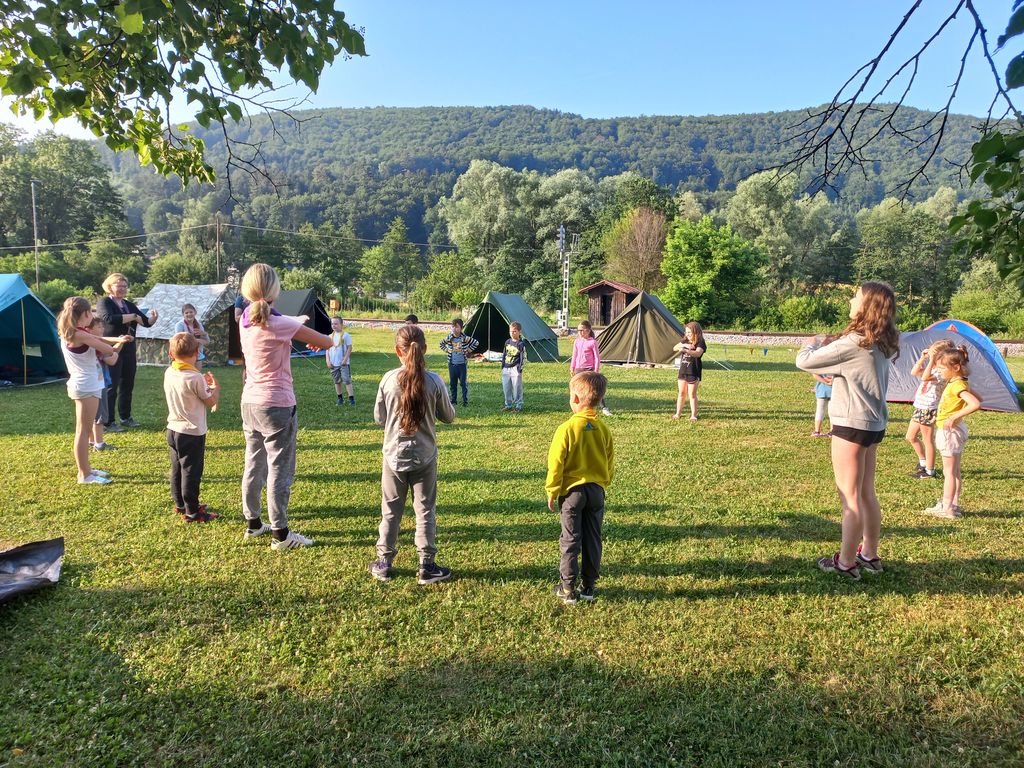 Taborniki smo ves čas delovanja povezani z naravo, vrhunec taborniškega leta pa je tabor. Tudi letos ga bomo trebanjski taborniki imeli. Za najmlajše murne, medvedke ter čebelice smo pripravili mini tabor. Zbrali smo se v petek, 18. 6., pri gasilskem domu v Trebnjem. Z najmlajšimi smo skupaj postavili šotore in se učili zabijati kline, vezati vrvice, pripraviti ležišče v šotoru. Večerjo smo si pripravili na ognju. Po druženju ob večernem ognju s pesmijo in ob zvokih violine pa smo prespali v šotorih. V soboto smo odšli do Velike jame in se v njeni notranjosti drsali po blatu ter poslušali zvoke v jamski temi. Z vrnitvijo na taborni prostor in po obveznem špricanju z vodo smo zaključili, da je mini tabor super zadeva.
