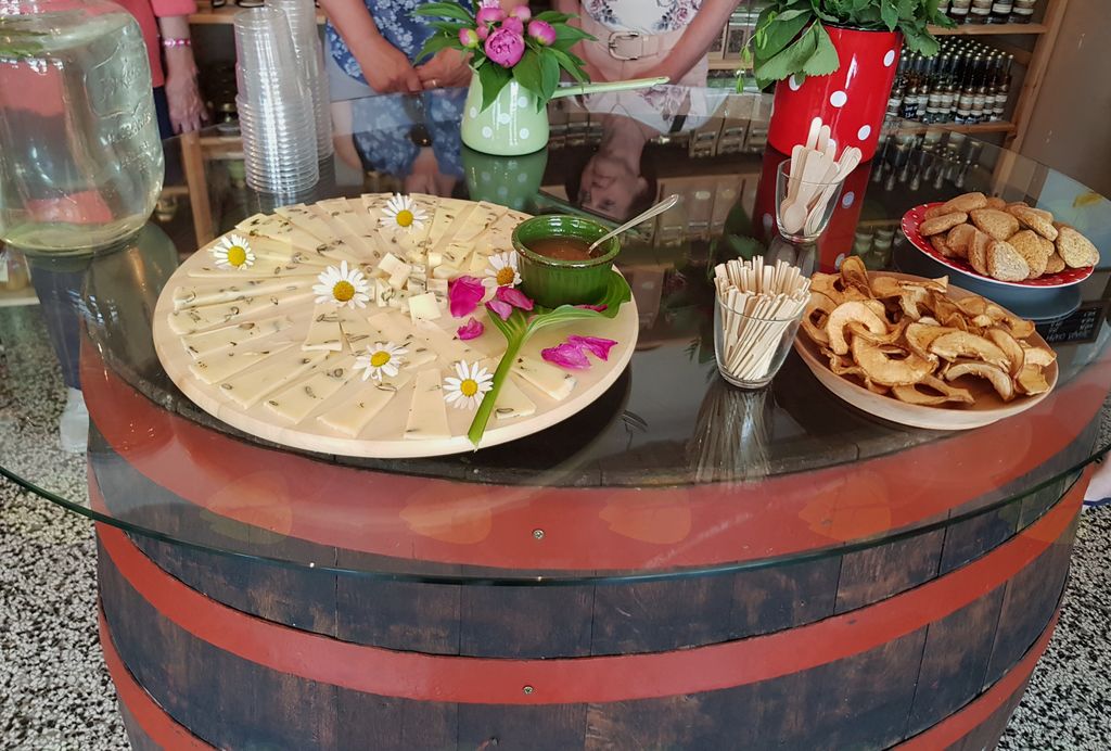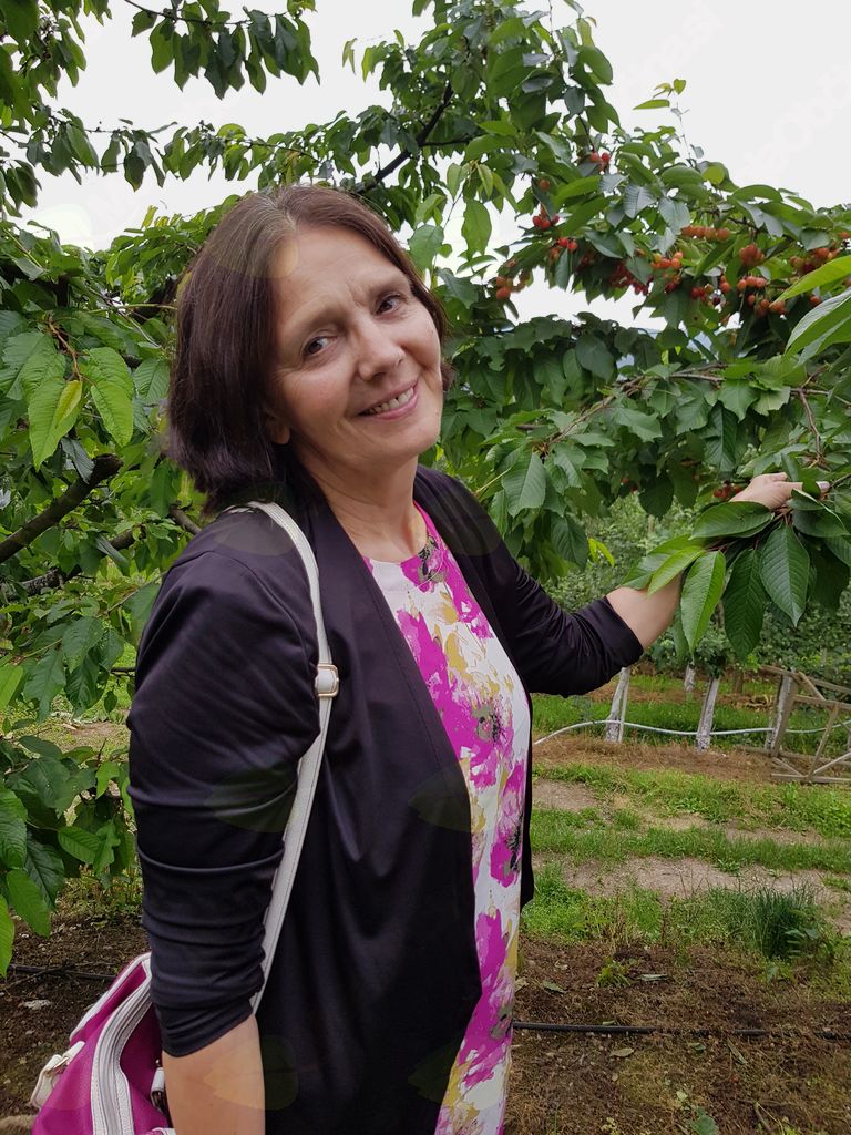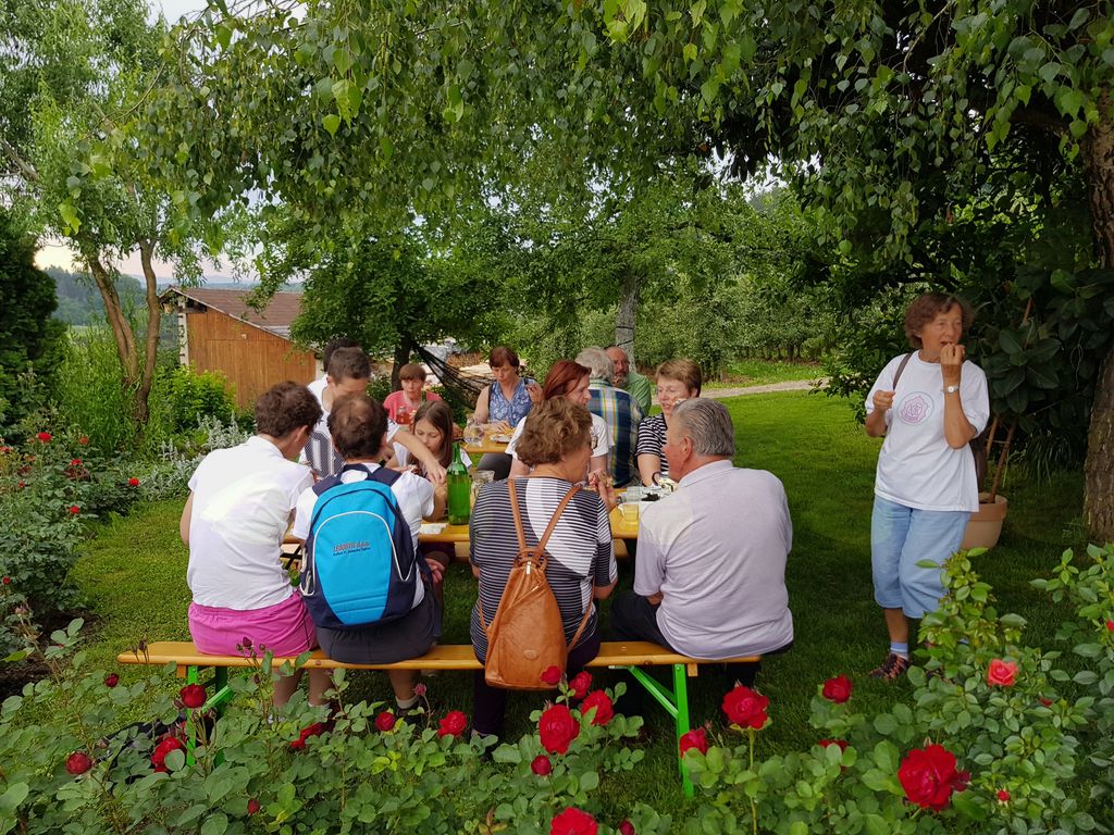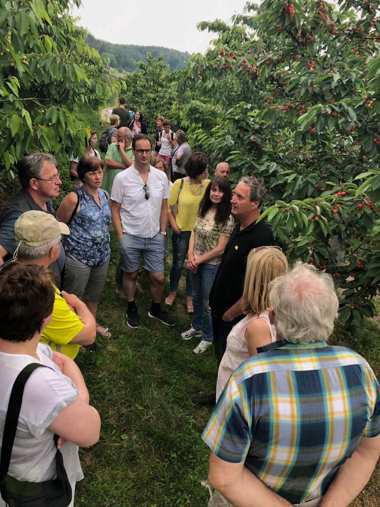 Izlet smo zaključili na Sadjarska kmetija Uhan. Pogostili so nas z odličnim domačim češnjevim zavitkom, pecivom ter naravnim sokom, manjkale pa niso niti okusne domače češnje in jagode. Vedno nasmejana Marjetka Uhan nas je podučila o sadjarstvu, njen mož Marjan pa nam je z veseljem razkazal sadovnjake.