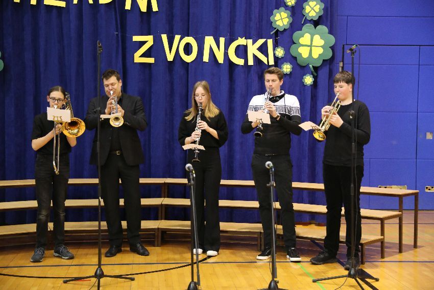 Uvod v dogodek je začel trobilni kvintet Glasbene šole Trebnje, sledila je pozdravna beseda Simone Nadrih, vodje Podružnične šole Dolenja Nemška vas. Nato so se na odru zvrstili: Mavrični zborček Vrtca Mavrica Trebnje pod vodstvom Barbare Leben Bone, Škratovski pevski zbor Vrtca Mokronožci (Vrtec OŠ Mokronog), ki ga vodi Petra Rozman, Cici muzikalčki iz Vrtca Čebelica (OŠ dr. Pavla Lunačka Šentrupert) pod vodstvom Antonije Berk Nemec, Škratovski pevski zbor Vrtca Mokronožci (Vrtec PŠ Trebelno - OŠ Mokronog), ki ga vodi Petra Pograjc, Mali zborček 1. razreda Osnovne šole dr. Pavla Lunačka Šentrupert pod vodstvom Martine Gorenc ter pevski zbor prvošolcev Osnovne šole Veliki Gaber, ki ga vodi Manca Černe.