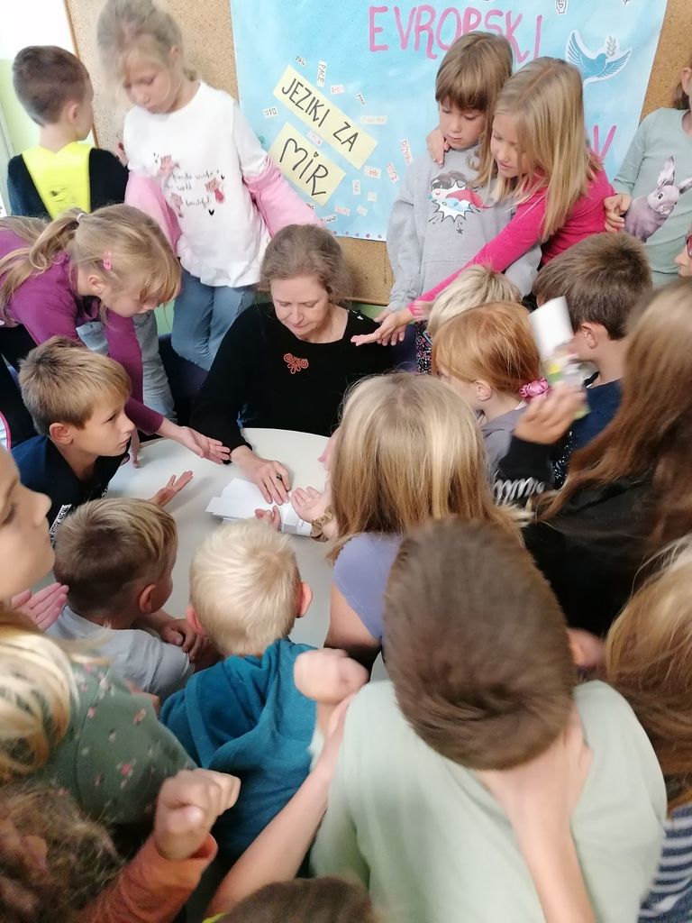 V četrtek, 3. oktobra 2024, nas je na Osnovni šoli Veliki Gaber obiskala pisateljica in pesnica Nataša Konc Lorenzutti. Najprej se je predstavila starejšim učencem, potem pa se je družila tudi z mlajšimi, ki so jo z navdušenjem poslušali. Razvedrila nas je z zabavnimi zgodbicami, basnimi, pesmimi in celo vici. Z nami je delila veliko zanimivih življenjskih izkušenj o igralskem poklicu, ustvarjanju književnih junakov in branju. Z veseljem je tudi odgovarjala na naša vprašanja in podpisovala knjižne kazalke. Z gostjo smo začeli bralno leto, čeprav je kar nekaj učencev že v prvem mesecu pouka bralno značko že opravilo. Kljub temu pa se bomo skušali držati pisateljičinega nasveta: Nikoli ne nehajte brati.