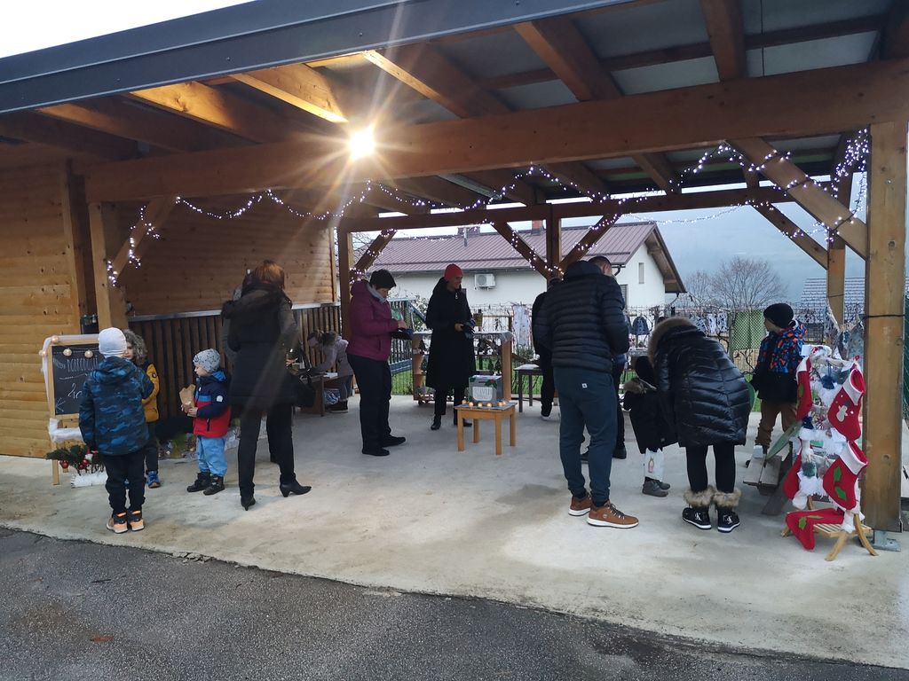 V Hiši otrok Trebnje se že jeseni pričnemo pripravljati na praznični mesec december, prihod katerega pozdravimo že tradicionalno v družbi naših staršev, starih staršev, sorojencev in sosedov na našem božično-novoletnem bazarju. Nanj se pripravljamo s posebno ljubeznijo in predanostjo, saj želimo najdražjim ponuditi široko izbiro izdelkov, ki jih vsako leto znova z veseljem naredijo naše marljive majhne in velike roke. Letošnji december smo tako skupaj pozdravili 2. 12. na našem vrtčevskem dvorišču, kjer smo v prazničnem ambientu in ob ponudbi naših izdelkov obiskovalce razvajali še z domačimi dobrotami. Vsem se iskreno zahvaljujemo za obisk in vse prostovoljne prispevke, s katerimi bo našim otrokom omogočeno izpolniti željo po izgradnji blatne kuhinje na našem vrtu. Drug drugemu smo na bazarju podarili toplo popotnico v praznične dni. Prijetne praznike in lepo prihajajoče leto želimo tudi vsem bralcem Glasila Trebnje.