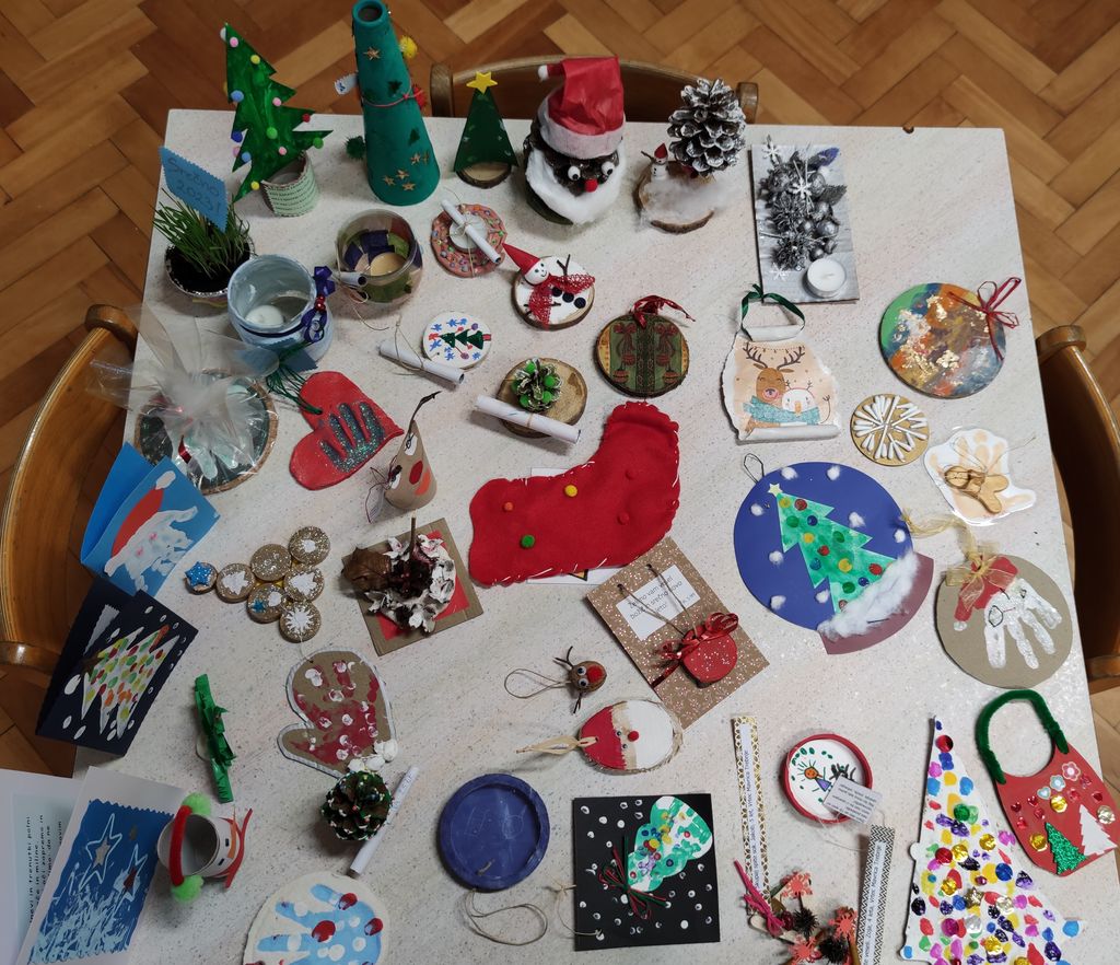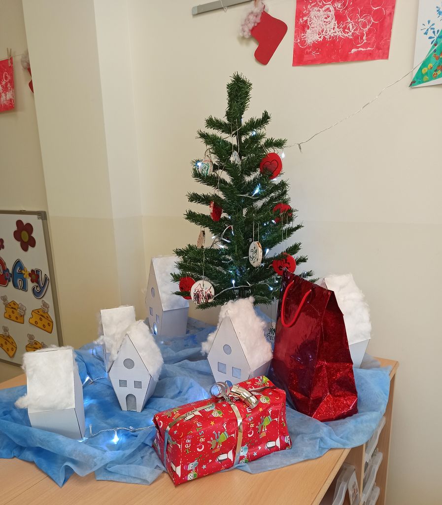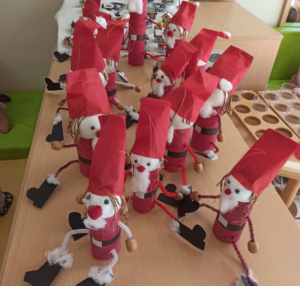 Skupaj smo izdelali okraske, s katerimi smo vrtec odeli v praznično preobleko. Posladkali smo se z Miklavževimi dobrotami, ki so nas zjutraj pričakale v peharjih, Božiček pa je pod smrečicami pustil vreče z različnimi didaktičnimi igračami in drugimi igrami ter knjigami.