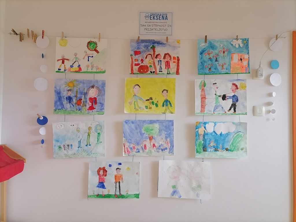 V tednu okrog 16. novembra 2024 smo se ob pomoči knjižnih junakov in prigod iz knjig Mavrična ribica, Grdi raček, Mala miška z velikim srcem in Bodi prijazen pogovarjali o strpnosti in nestrpnosti, prijateljstvu, prijaznosti, solidarnosti in o pomenu medsebojne pomoči in sodelovanja. Ob tem smo ustvarjali na mnogo različnih načinov ter tako pripravili likovni razstavi v enotah Mavrica in Dobrnič.