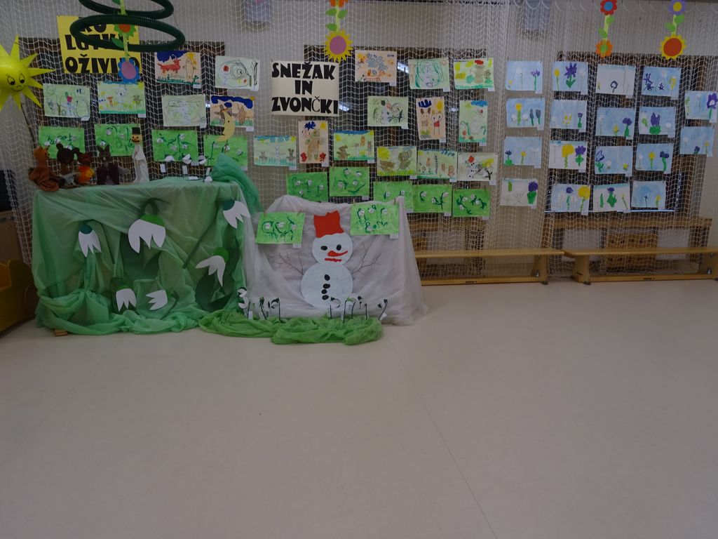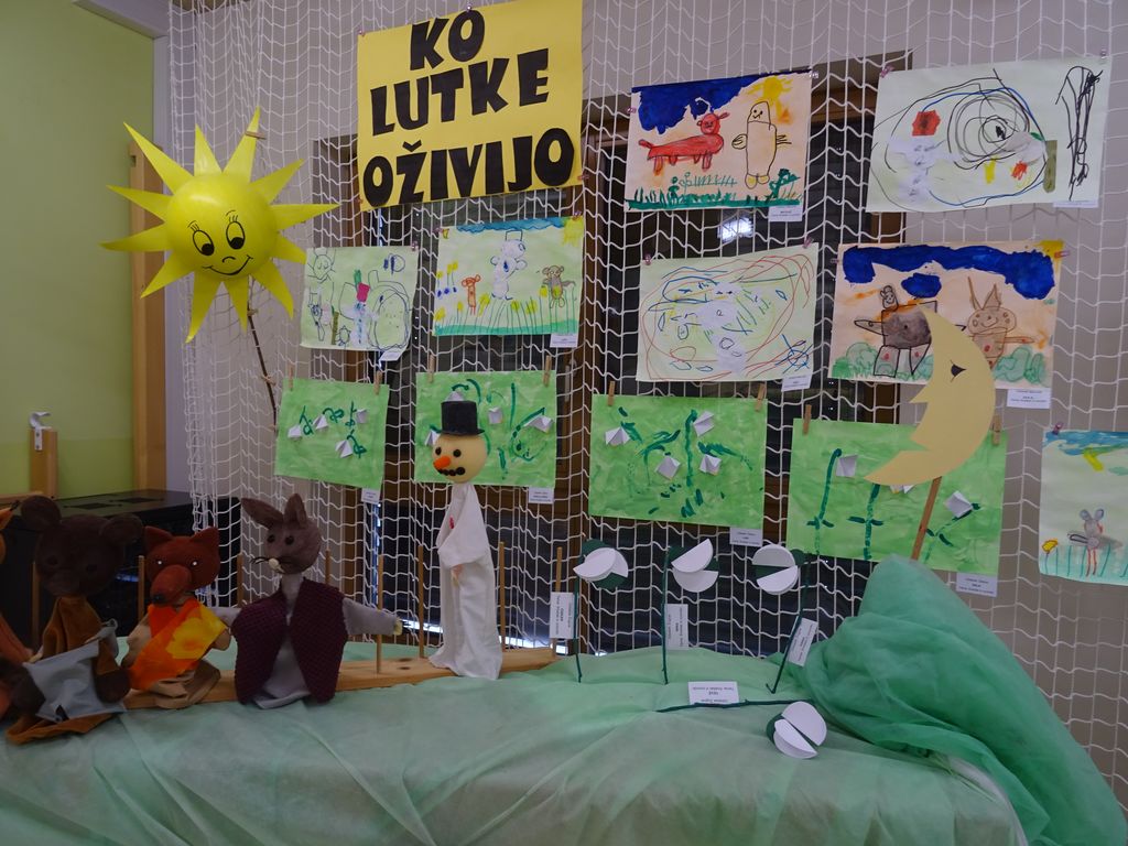 Zima se je poslovila in obiskala nas je pomlad. Strokovne delavke smo otrokom zaigrale lutkovno predstavo Snežak in zvončki in tako smo pospremili snežake v hladne kraje, pri nas pa so začeli rasti zvončki. Posijalo je toplo sonce, ki nas kar kliče k raziskovanju narave, cvetočih travnikov in bližnje reke. Z otroki smo nabirali spomladanske cvetlice, naredili herbarij, ugotavljali in raziskovali kako bi pobarvali cvetlice. Seveda je to otrokom tudi uspelo, ko so zvonček namočili v modro pobarvano vodo in se je obarval na modro. Kakšno presenečenje je bilo to. Vsako delavnico so otroci likovno poustvarili in naredili čudovite lutke. Skupaj smo pripravili razstavo, ki je krasila naš skupni prostor ter bila na vpogled tudi staršem in zunanjim obiskovalcem našega vrtca...LUTKA, TI SI MOJA PRIJATELJICA.