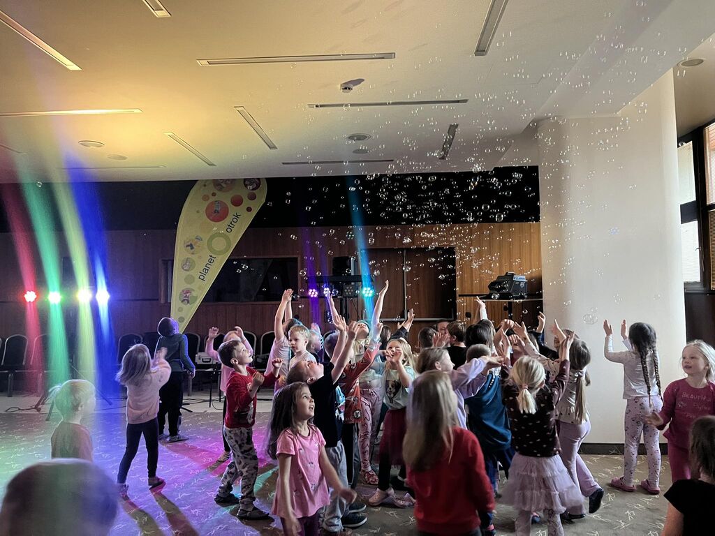 Popoldnevi so namenjeni številnim zanimivim dodatnim dejavnostim. Otroci se odpravijo na sprehode po čudoviti naravi Kranjske Gore, doživijo pravo pustolovščino v adrenalinskem parku ter se preizkusijo v gradnji gorskih hišic. Pripravijo skupno kresovanje, se podajo na lov na zaklad ter rešujejo škratove naloge v naravi. Veliko veselja prinesejo zabavne štafetne igre na prostem, prosti čas pa preživljajo v prijetnem druženju po sobah, ob družabnih igrah, kockah in likovnem ustvarjanju. Eden izmed vrhuncev letovanja je vsako leto nepozabna disko zabava, kjer ob pisanih mavričnih reflektorjih plešejo, pojejo in rajajo.