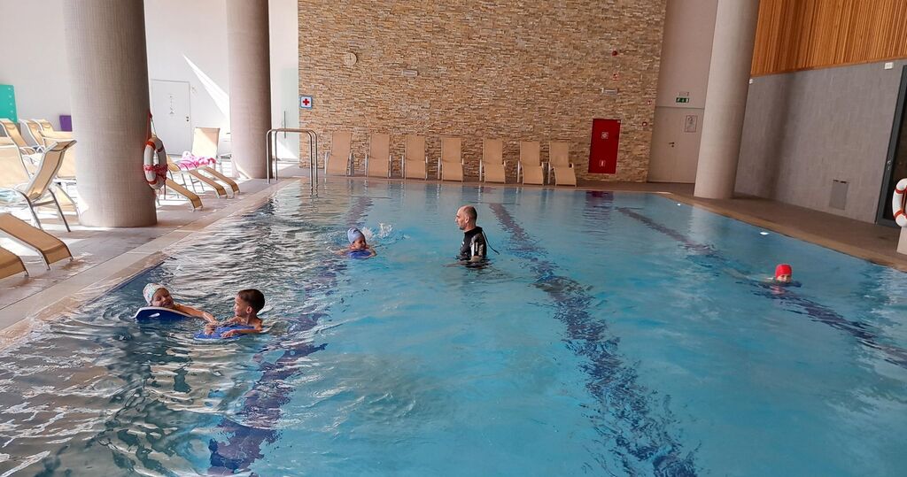 Otroci dopoldneve večinoma preživljajo na bazenu, kjer poteka plavalni tečaj. Preizkusijo se v plavalnem opismenjevanju, igrajo vodne igre ter spoznavajo različne predplavalne spretnosti. Naučijo se pravilnega in varnega obnašanja na bazenu, izvajajo ogrevalne vaje ter sodelujejo pri različnih plavalnih nalogah in igrah, ki postopoma izboljšujejo njihove plavalne spretnosti. Za nagrado si zelo radi privoščijo pogumen skok v vodo, sproščanje v masažnem bazenu ter zabavo z žogicami in brizgalno kroglo v otroškem plitkem bazenu.