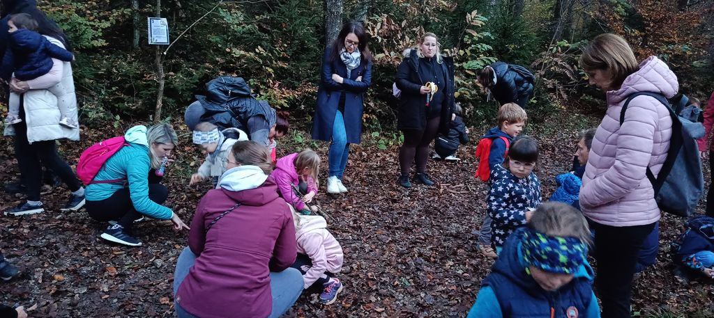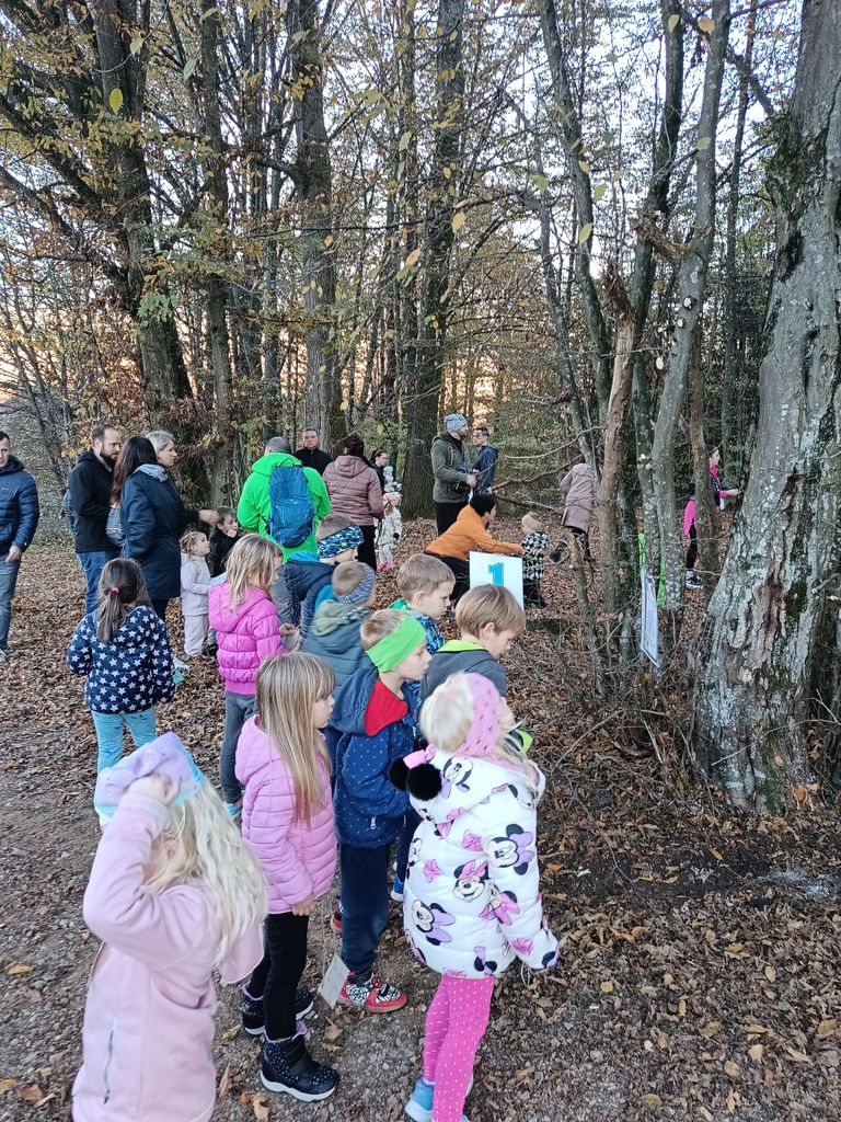 29. 10. 2024 je bilo lepo torkovo popoldne, ki smo ga namenili skupnemu srečanju otrok in staršev B hodnika. Odpravili smo se na pohod do bližnjega gozda, v katerem smo iskali zaklad. Starši so skupaj z otroki s pomočjo navodil, ki so bila izobešena na drevesih, izvajali različne matematične naloge, kjer so utrjevali štetje, povezavo med količino in številko, razumevanje pojmov majhen - velik, večji - manjši, vizualno primerjanje in hkrati utrjevali o ponavljajočih se vzorcih, kar krepi logično razmišljanje.