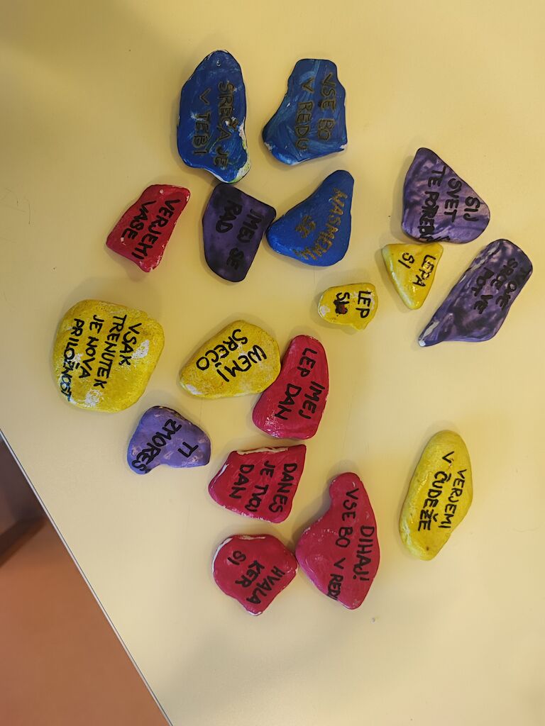 V naših igralnicah so nastajala kolesa prijaznosti, kamenčki sreče in celo