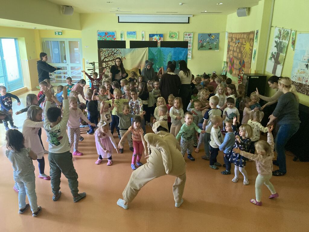 Spoznali smo gozdno veverico, ki si je pripravljala ozimnico in se naučila, da je s pomočjo prijateljev vse lažje in lepše in jo povabili na festival prijaznosti. Na njem smo vsi vrtičkarji z našega hodnika B združili moči, zapeli, zaplesali in pokazali, da je prijaznost nalezljiva – in da nas prav nič ne stane.