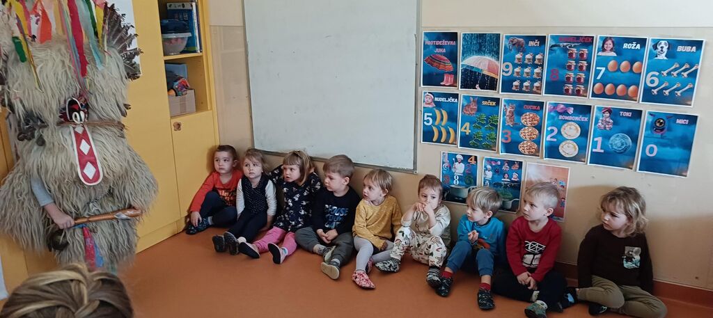 Skupaj smo obiskali več igralnic, zaplesali, zazvonili z zvonci ter simbolično odganjali zimo. Otroci so z zanimanjem prisluhnili pogovoru o kurentovem kostumu. Spoznavali smo, iz česa je narejen, katere vrste perja in kožuha ga sestavljajo ter kakšen pomen imajo posamezni deli oprave. Posebno pozornost smo namenili rutici, ki jo ima kurent privezano na palici, saj predstavlja pomemben simbol prijateljstva in dobrih želja. Ko je kurent rutico prejel, je bil nanjo zelo ponosen, otroci pa še toliko bolj srečni, ker so mu jo lahko podarili.
