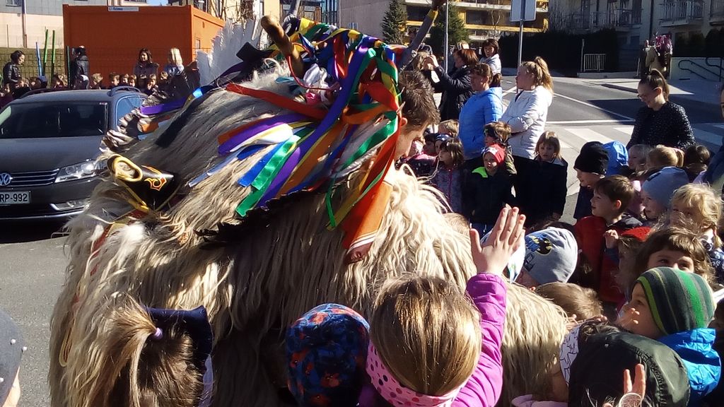 V Vrtcu Mavrica Trebnje pa so nas na ta dan obiskali koranti oziroma kurenti, kot jim pravimo pri nas. Pričakali smo jih na igrišču pred vrtcem. Izročilo pravi, da kurenti z glasnim vriščem, ki ga pri poskakovanju ustvarjajo zvonci, obešeni okoli njihovih pasov, odganjajo zimo, kličejo pomlad ter dobro letino.