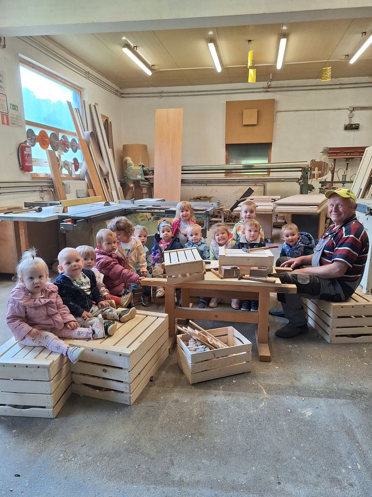 Skupaj smo izdelali tudi leseno gajbico, ki jo bomo odnesli v našo gozdno igralnico – tam bo dobila novo nalogo in postala del naše igre ter raziskovanja v naravi.