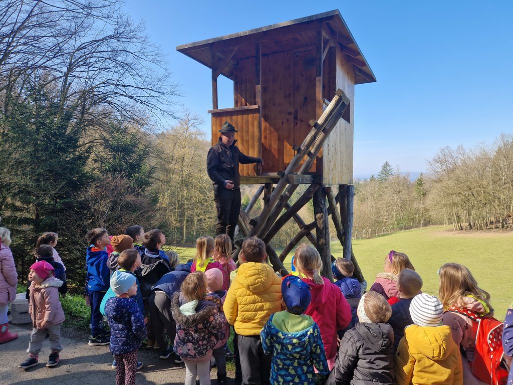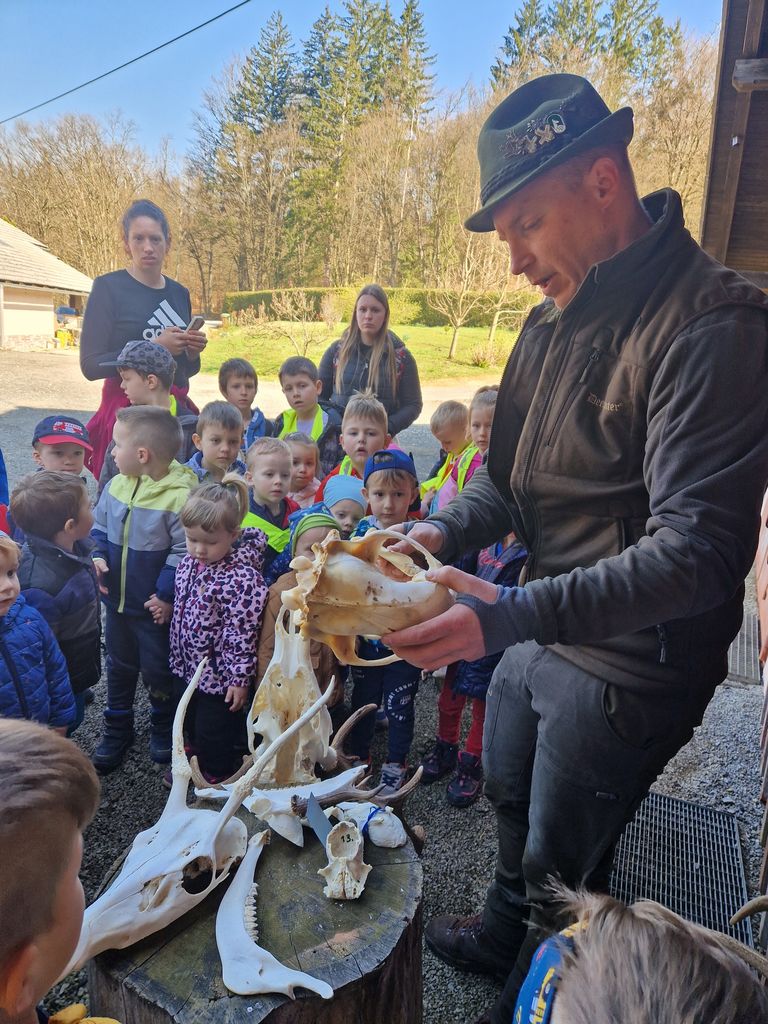 Lovec je varuh gozda, zaščitnik živali in skrbnik ravnovesja v boju za prevlado med ljudmi in živalmi. Njegova vloga je ključna, da se ohrani zdrava prehranjevalna veriga in da je vsem živalim dana enakovredna možnost preživetja. Takšno sporočilo smo želele predati otrokom vrtca Sončnica in za pomoč pri tem prosile gozdnega čuvaja našega teritorija, Duška Štepca. Rade volje nam je odgovoril na vsa naša vprašanja ter nas s konkretnimi primeri okostja poučil o nekaterih gozdnih živalih. Kdor je želel, se je lahko povzpel tudi na lovsko opazovalnico in iz nje opazoval njegovo zasebno čredo jelenov in košut. Otroci so z obiskom lovca dobili priložnost premagati strah pred njim, nekateri pa so se nad poklicem povsem navdušili.