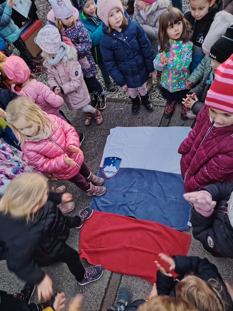Po vseh opravljenih izzivih pa smo si zaslužili odpraviti do zadnje postaje – kjer smo iz barvnega blaga sestavili slovensko zastavo in odkrili ciljni zaklad – posladkali smo se s figami in ostalim suhim sadjem. Ob koncu srečanja smo nasmejani in zadovoljni ugotovili, da so tovrstni pohodi prijetna ter zelo poučna izkušnja. Otroci in odrasli smo na igriv način obnovili kulturni pomen državnih simbolov.
