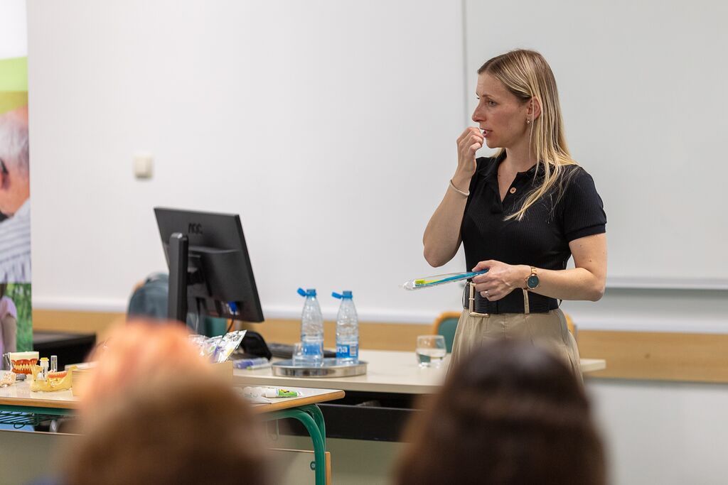 S praktičnimi prikazi na modelih sta pokazala, kako pravilno skrbeti za ustno higieno ter predstavila sodobne protetične rešitve, ki vračajo nasmeh in samozavest.