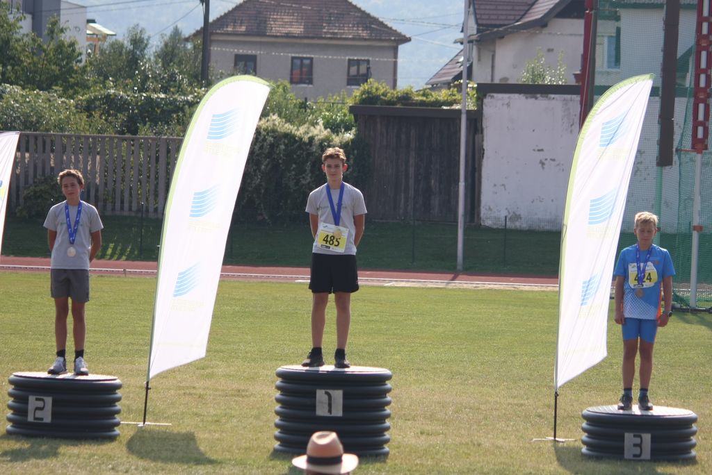 Mladi atleti iz Trebnjega nas ob koncu tekmovalne sezone spet navdušujejo. V Mariboru so na Prvenstvu Slovenije v kategoriji U12 včeraj in danes presegli vsa pričakovanja. Osvojili so kar dva naslova državnega prvaka; Tjaž Jevnikar v suvanju krogle (rezultat 9,84 m) in Matic Radelj v metu vortexa (54,12 m, 2 metra za državnim rekordom), Matic je bil še drugi v suvanju krogle (9,57 m). Karolina Zaletel je osvojila tretje mesto v tekmovalni hoji na 1000 metrov (6 minut in 38 sekund), kar je uspelo tudi Joštu Pungartniku v skoku v višino (126 cm). Omeniti je potrebno še nekaj drugih visokih uvrstitev: Tjaž je zasedel 4. mesto v vortexu (44,00 m), Matic Gracar je bil 4. v suvanju krogle (8,74 m), kjer se nam je v zadnjem metu izmuznila trojna zmaga in 6. v metu vortexa (43,73 m). Prav tako je 4. mesto osvojila štafeta 4x200 metrov, v kateri sta poleg zgornjih Maticev tekla še Matic Selak in Bine Žlebnik. Odlično je nastopila Katarina Tomšič, ki je osvojila 4. mesto v skoku v višino v kategoriji U14 (138 cm). Čestitke tudi ostalim nastopajočim Trebanjcem, ki so vsi po vrsti postavljali osebne rekorde.