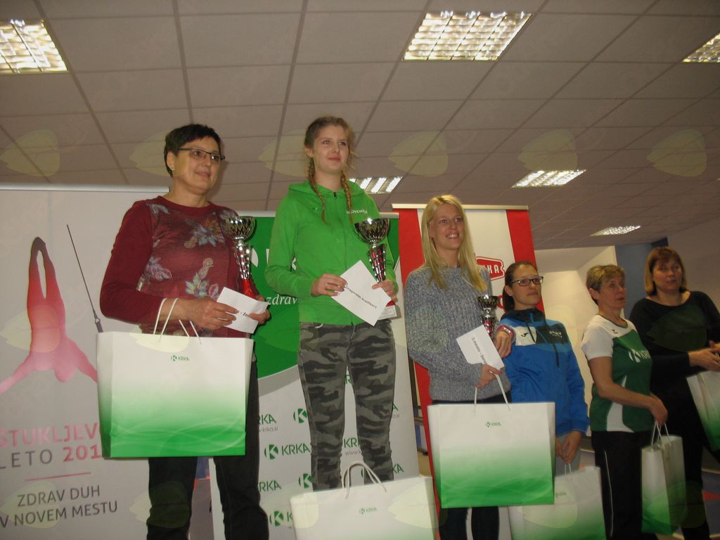 REZULTATI FINALA - ŽENSKE: 1. Anja Forštnarič (Triglav Kranj) 600, 2. Silva Zupančič (Trebnje) 595, 3. Carmen Vogel (Gut Holz Hausling) 589, 4. Noemi Živkovič (Calcit Kamnik) 573, 5. Alenka Miklavčič (Krka Novo mesto) 554, 6. Katja Šribar (Trebnje) 551, 7. Marinka Kos (Krka Novo mesto) 549, 8. Brigitte Strelec (Triglav Kranj) 544.