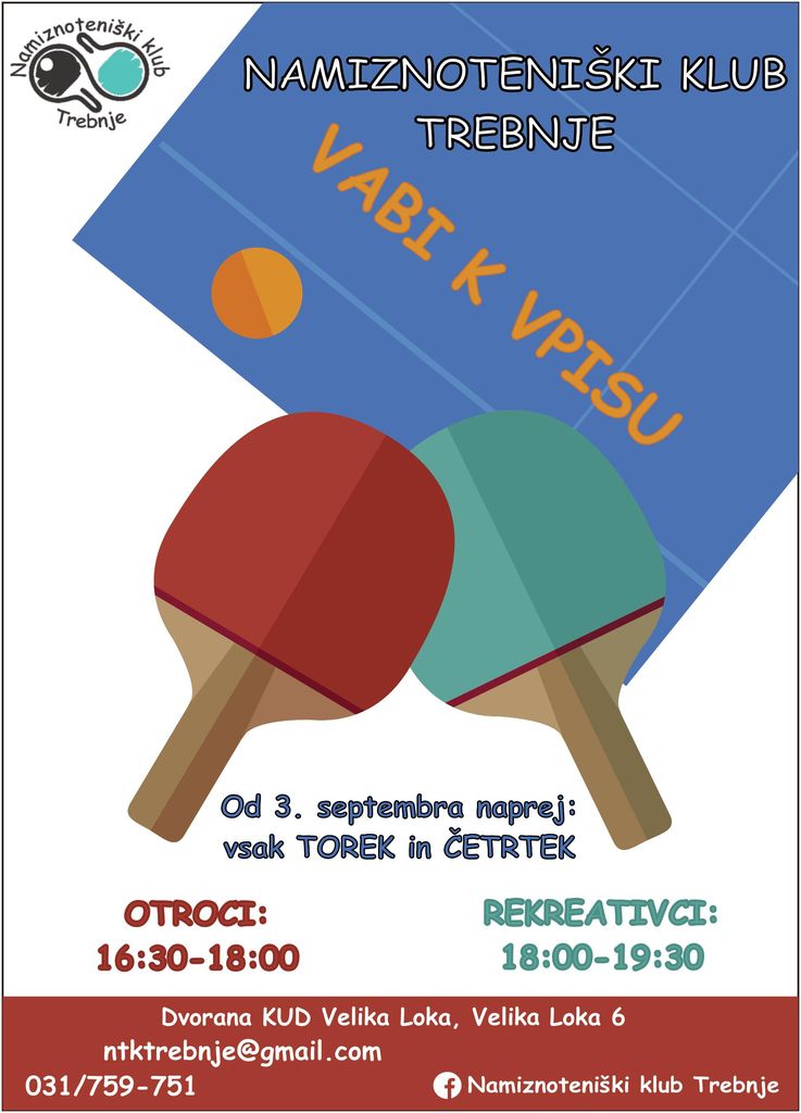 veseli nas, da lahko sporočimo, da bomo po uspešno zaključeni prvi sezoni ponovno organizirali treninge namiznega tenisa za otroke in rekreativce. Naš cilj je še naprej spodbujati zdrav način življenja, gibanje in uživanje v tej zanimivi športni disciplini.