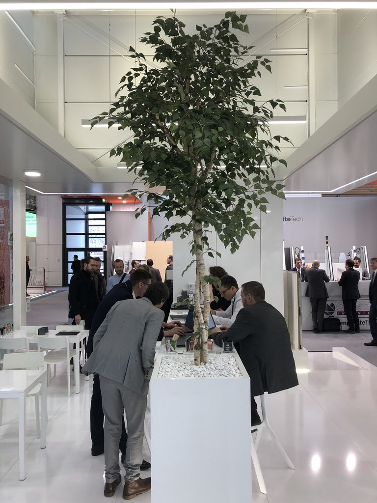Rezultat je bila impresivna bela instalacija, ki je predstavljala njihov prezračevalni fasadni sistem in celovito stensko rešitev, s sedeži na voljo obiskovalcem in z vgrajenimi LED lučmi pritrjenimi na vrhu in na dnu instalacije, kar je ustvarilo prijetno ambientalno vzdušje. Drevo v središču prostora je bilo simbol bližine narave in trajnosti. Čist, odprt prostor pa je bil zasnovan tako, da je obiskovalcem ponujal bogato doživetje navidezne resničnosti.