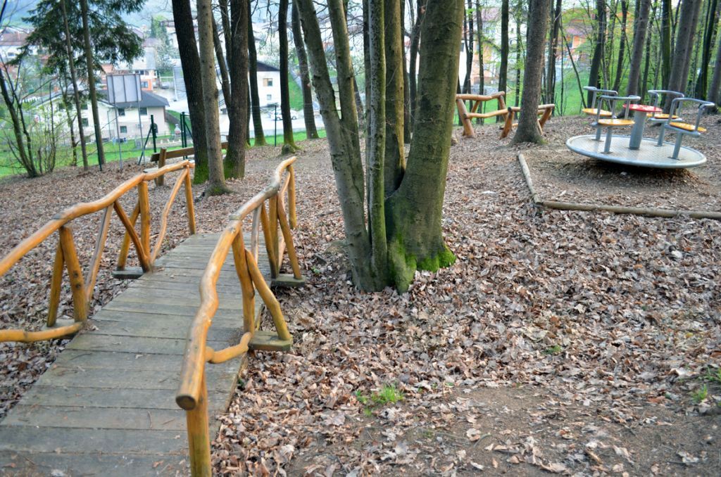 Park je namenjen vsem starostnim skupinam (trije sklopi; mlajši otroci, starejši otroci in odrasli), v njem pa se nahajajo tudi ploščad za igro z žogo in gledališče v naravi. Za osvežitev je na voljo izvirni leseni pitnik z vodo iz vodovoda.