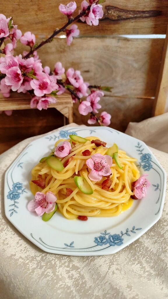 Gre za italijansko klasiko z dodatkom prve gurmanske sezonske zelenjave v letu – šparglji. Hitro pripravljeno kosilo iz petih sestavin, za katerega sem prepričana, da imate vse že v hladilniku in shrambi.