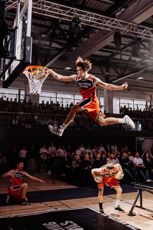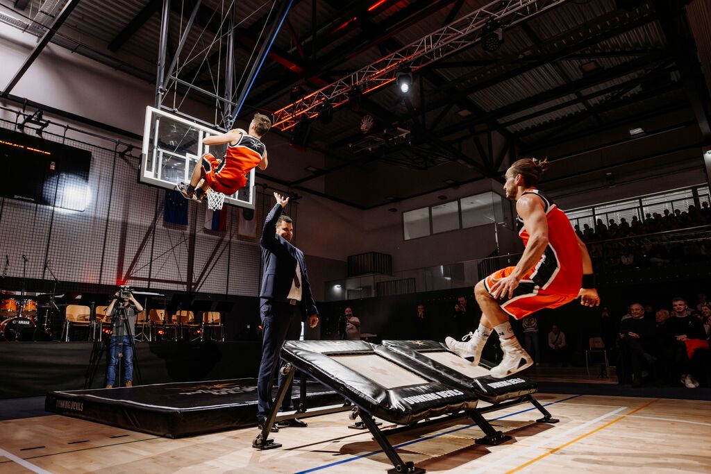 Za navdušenje in zabavo v dvorani so poskrbeli člani svetovno znane akrobatske skupine Dunking Devils, ki so z atraktivnim zabijanjem poskrbeli za nepozaben šov.