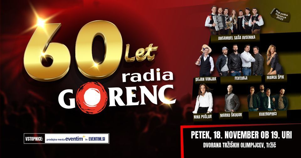 Pridružite se nam na praznovanju 60 letnice Radia Gorenc. Ob tem jubileju vam pripravljamo pravo glasbeno poslastico.