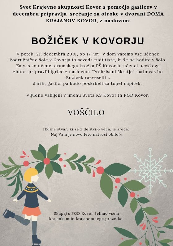 Božiček bo obiskal kovorske otroke