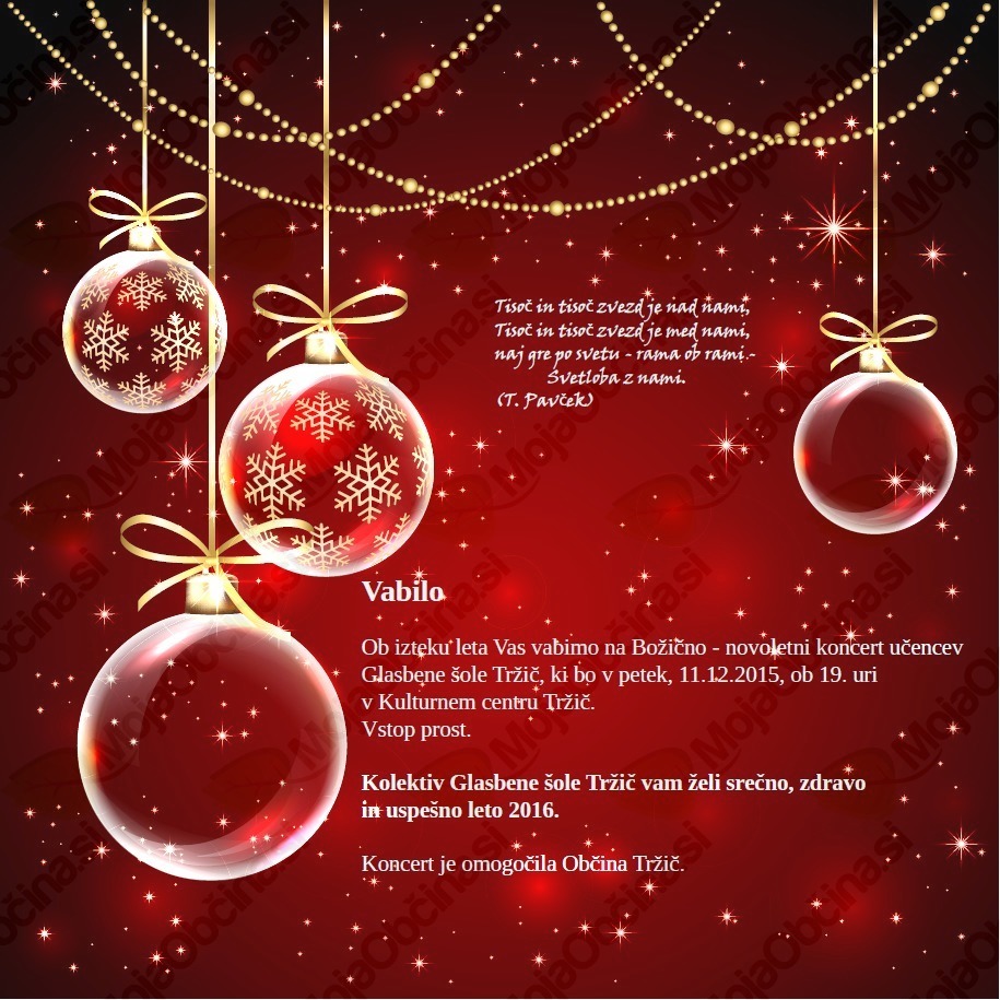 BOŽIČNO - NOVOLETNI KONCERT GLASBENE ŠOLE TRŽIČ