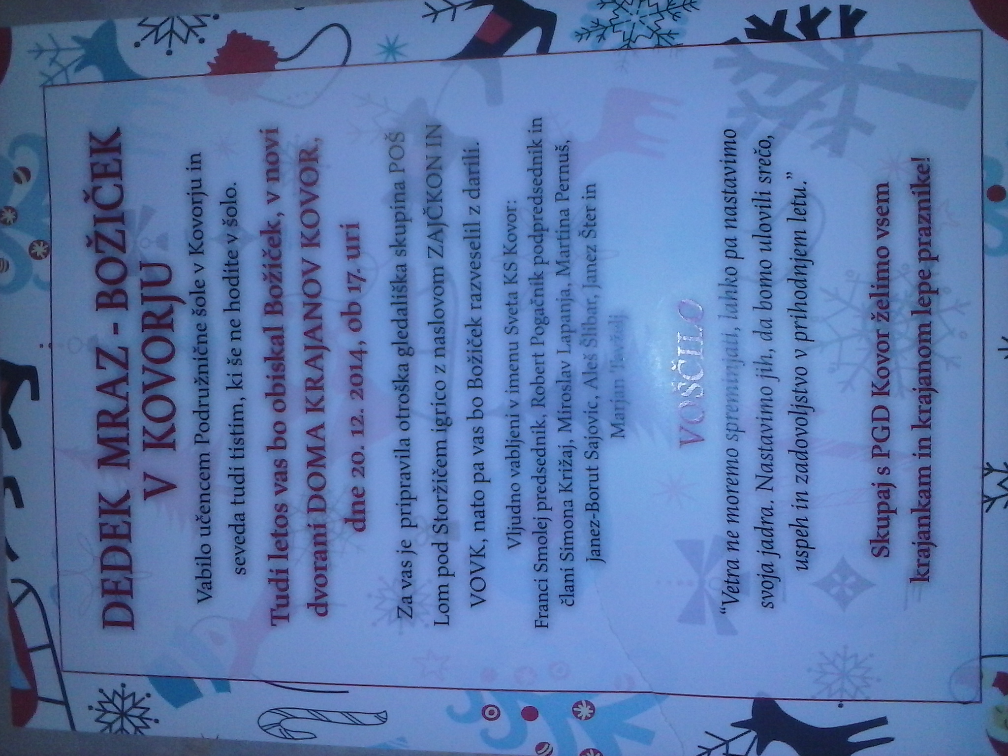 V Kovorju, bosta letos Dedek mraz in Božiček podarila najmlajšim poleg igrice in daril še posebno darilo- prav za najmlajše se bodo prvič odprla vrata novega Doma krajanov Kovor.