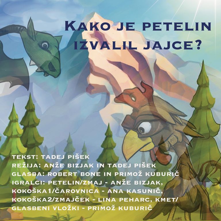 Predstava temelji na legendi o nastanku Tržiča. Za razliko od izvirnika vas bo popeljala na kmečko dvorišče, na katerem boste priča vsakdanu glavnega petelina in njegovih kokoši, ki so starega petelina že dodobra site in si želijo, da ga nadomesti nov, mlajši petelin! Kako je petelin izvalil jajce, kakšno je bilo njegovo nenavadno pišče in kako je vrh gore poletel v zrak, si boste lahko ogledali v 35-minutni lutkovni predstavi. Po predstavi boste lahko na mini knjižnem sejmu kupili otroške slikanice za 5 €.
